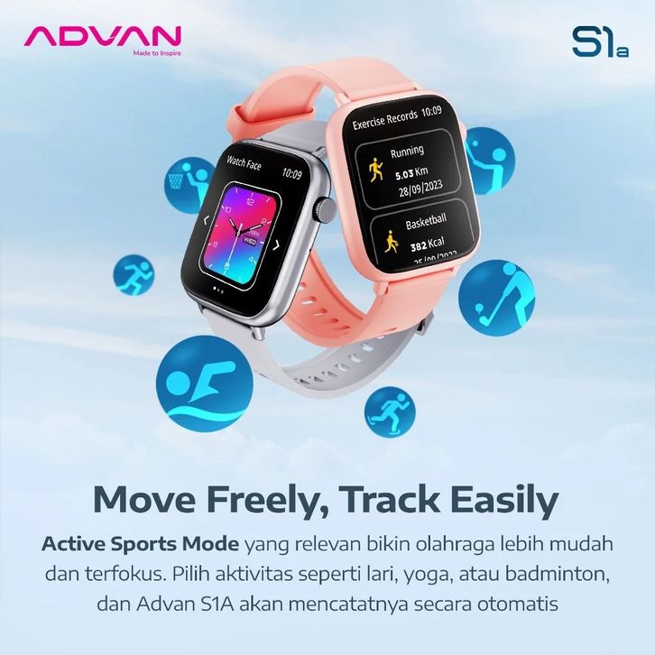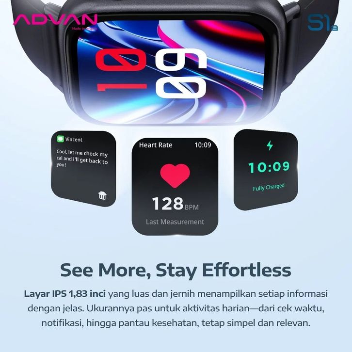 ADVAN Smartwatch S1a 1.83 Inch Bluetooth Call 20 Hari Standby IP68 Waterproof Heart Rate Blood Oxygen Garansi Resmi