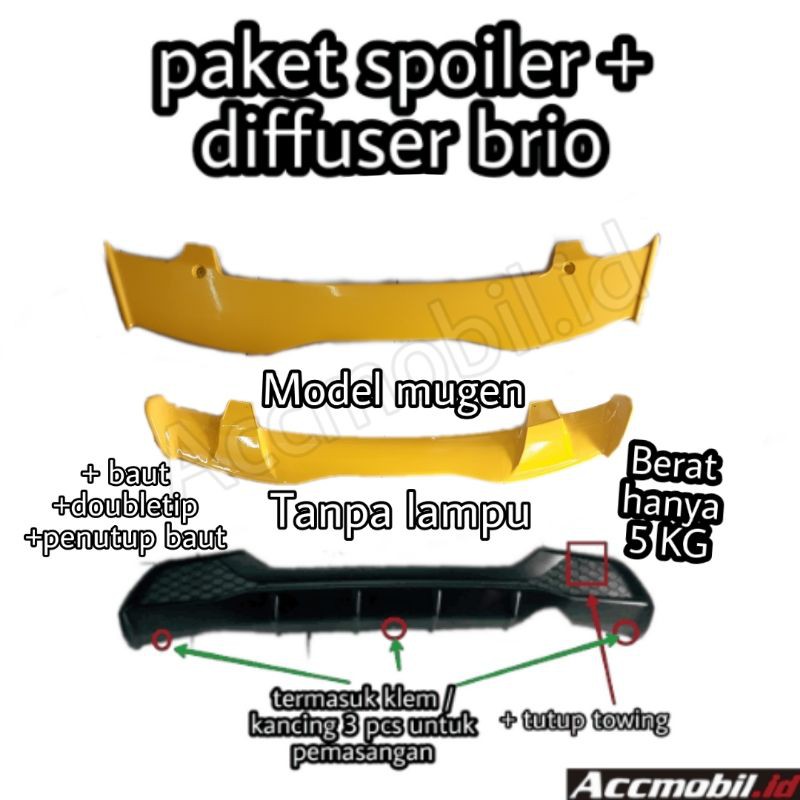 PAKET SPOILER HONDA BRIO MUGEN DAN DIFFUSER BRIO SATYA RS PLASTIK