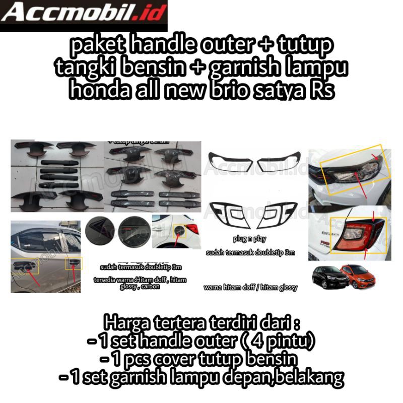 PAKET OUTER HANDLE TUTUP TANGKI BENSIN GARNISH LAMPU ALL NEW BRIO SATYA RS