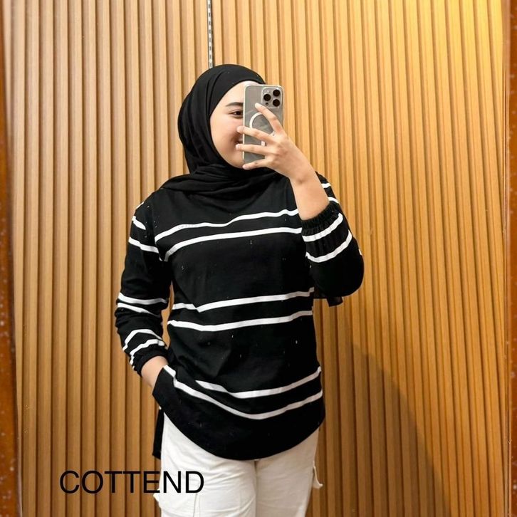 Atasan kaos Wanita OVAL lengan Panjang Lengan Garis Bahan Katun combed