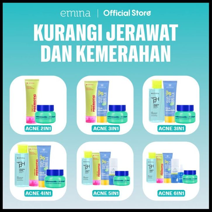 [ACNE CARE SET] Emina Bundle All in 6in1 Face Wash Acne Care + Toner + Serum + Calming Soothing Moisturizer Gel + Sunscr