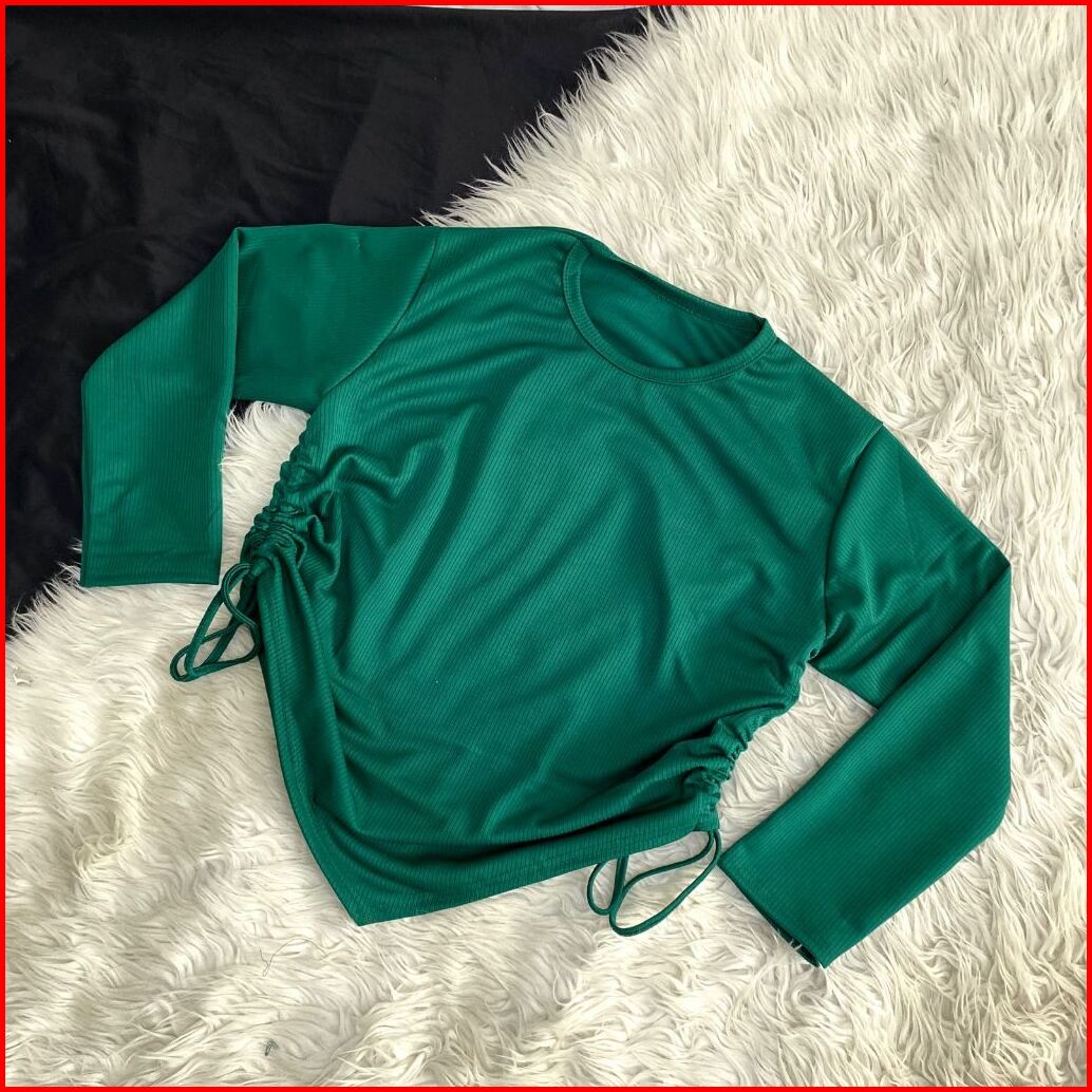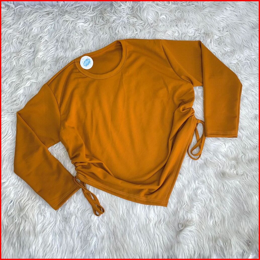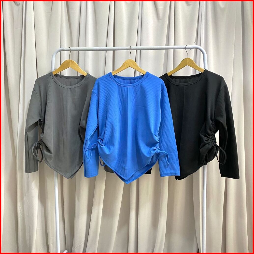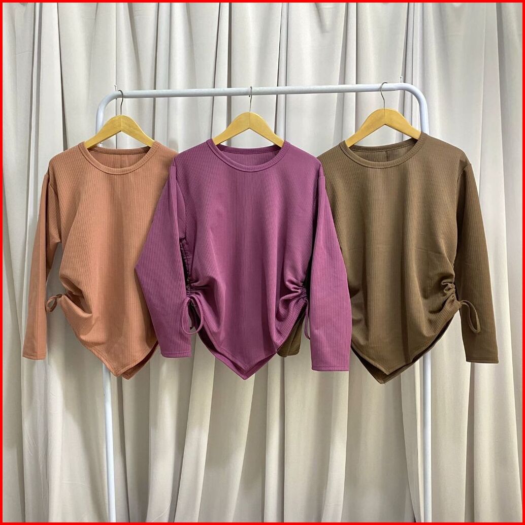 Vierra Jumbo Atasan Serut Rib Knit Lengan Panjang Daily Blouse Valen Top Jumbo Xl Mayva