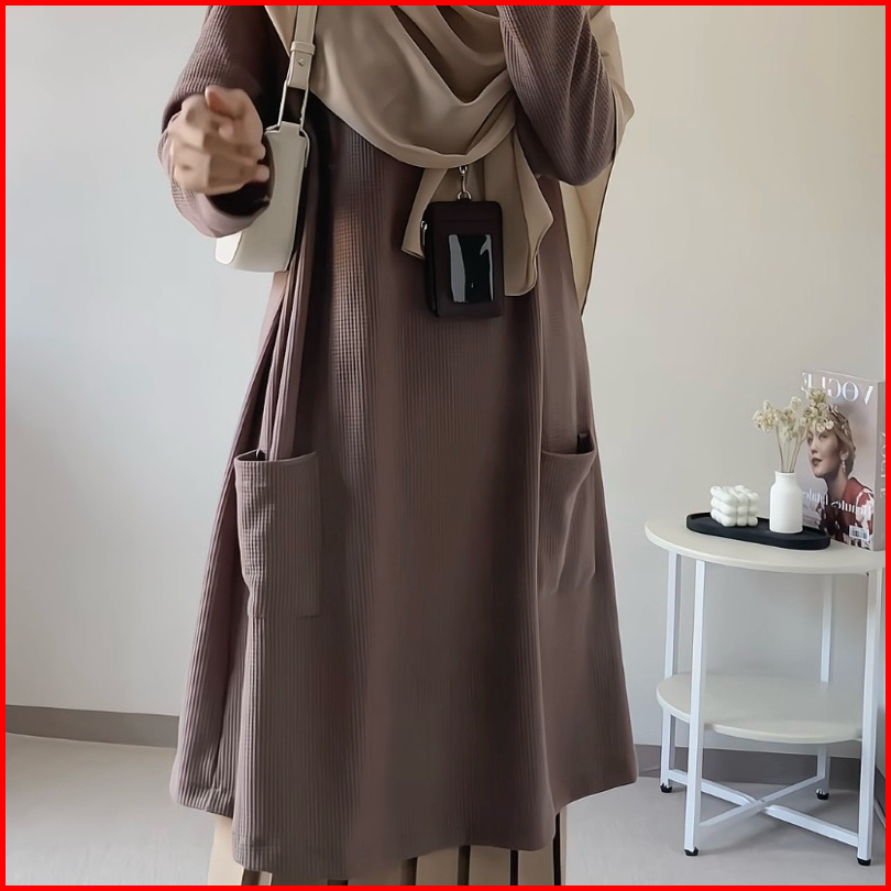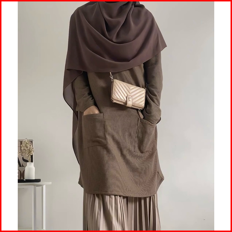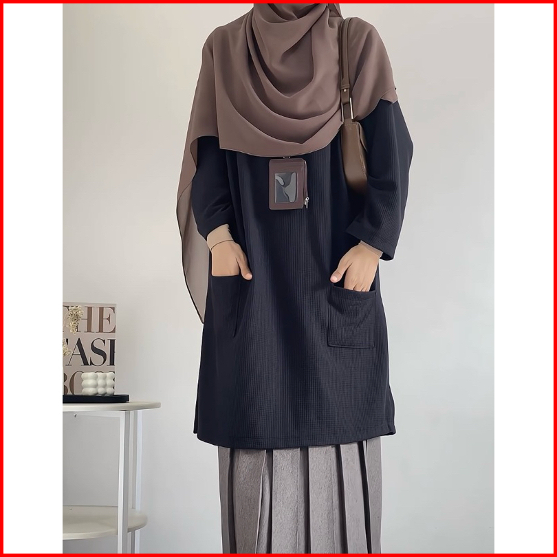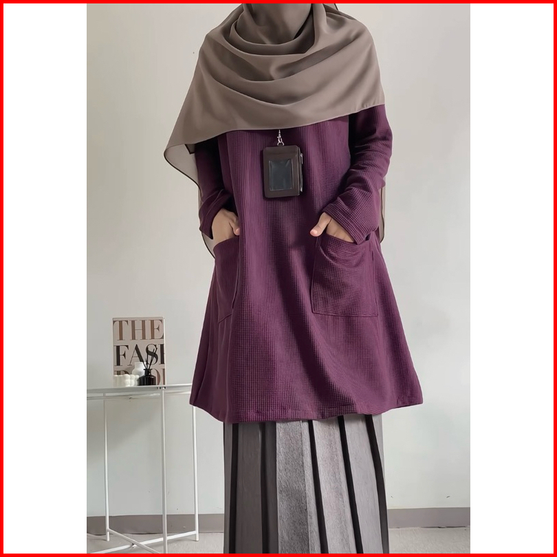 Alesha Tunik Waffle Allebel.co Long Tunik Atasan Waffle Knit Waffle