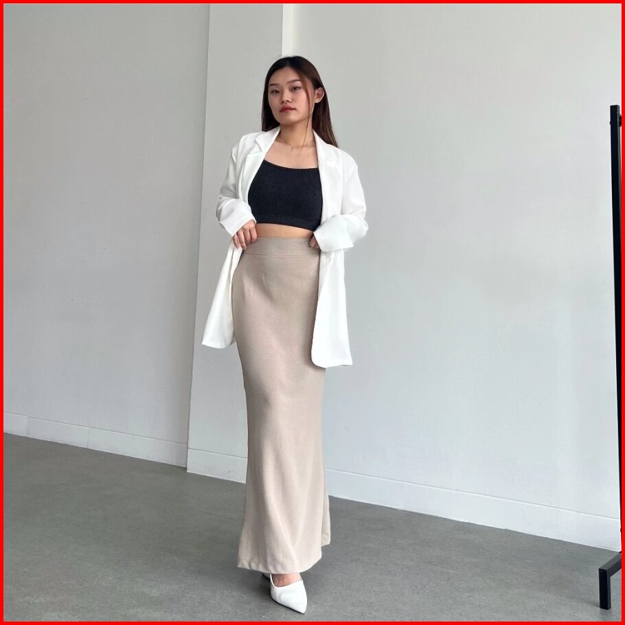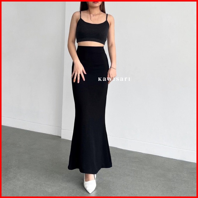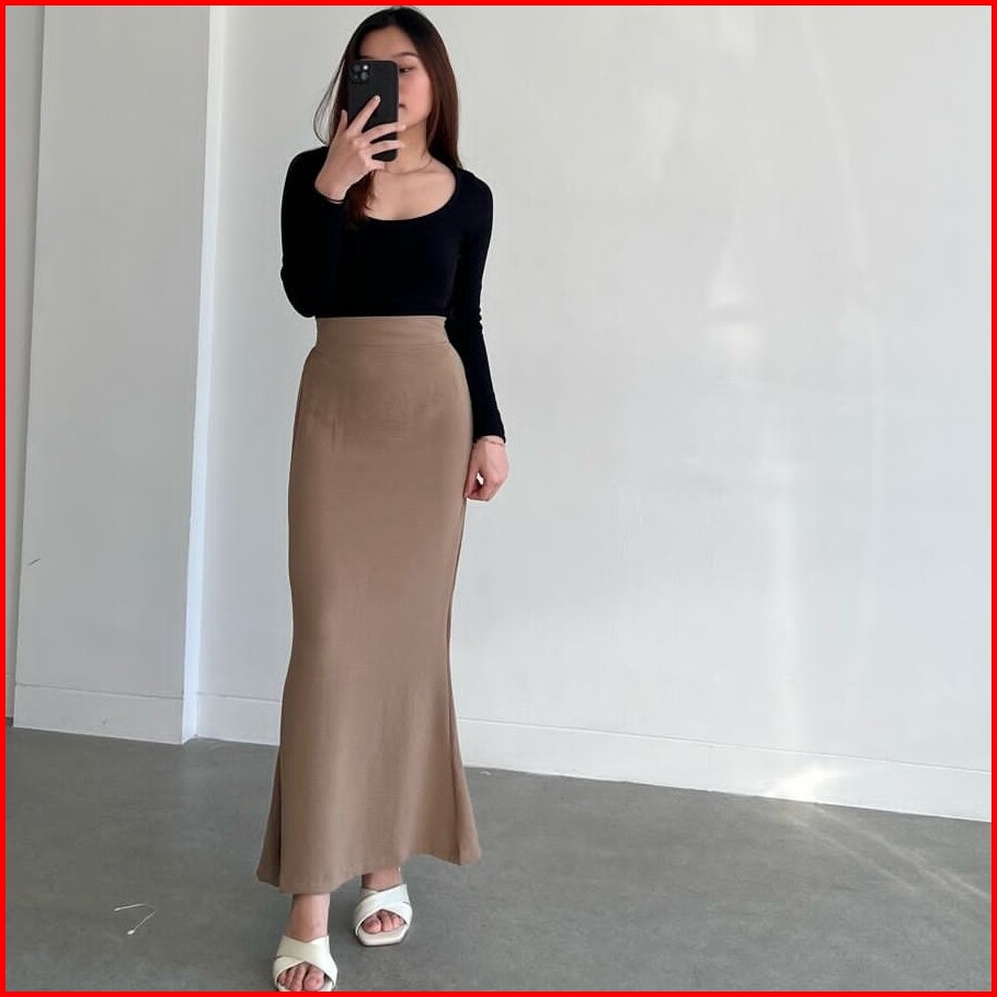 Kawisari - Lunar Mermaid Skirt - Scuba Premium Rok Flare Wanita Basic Polos - Maxi Midi Rok Panjang Wanita Adem Melar El