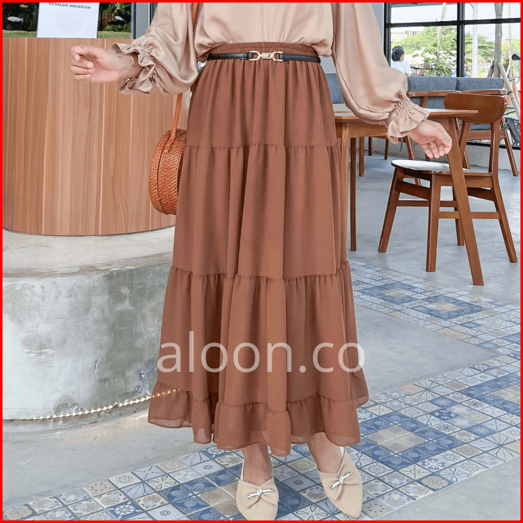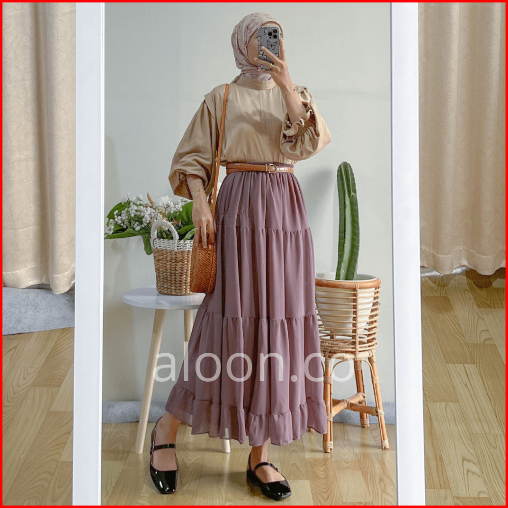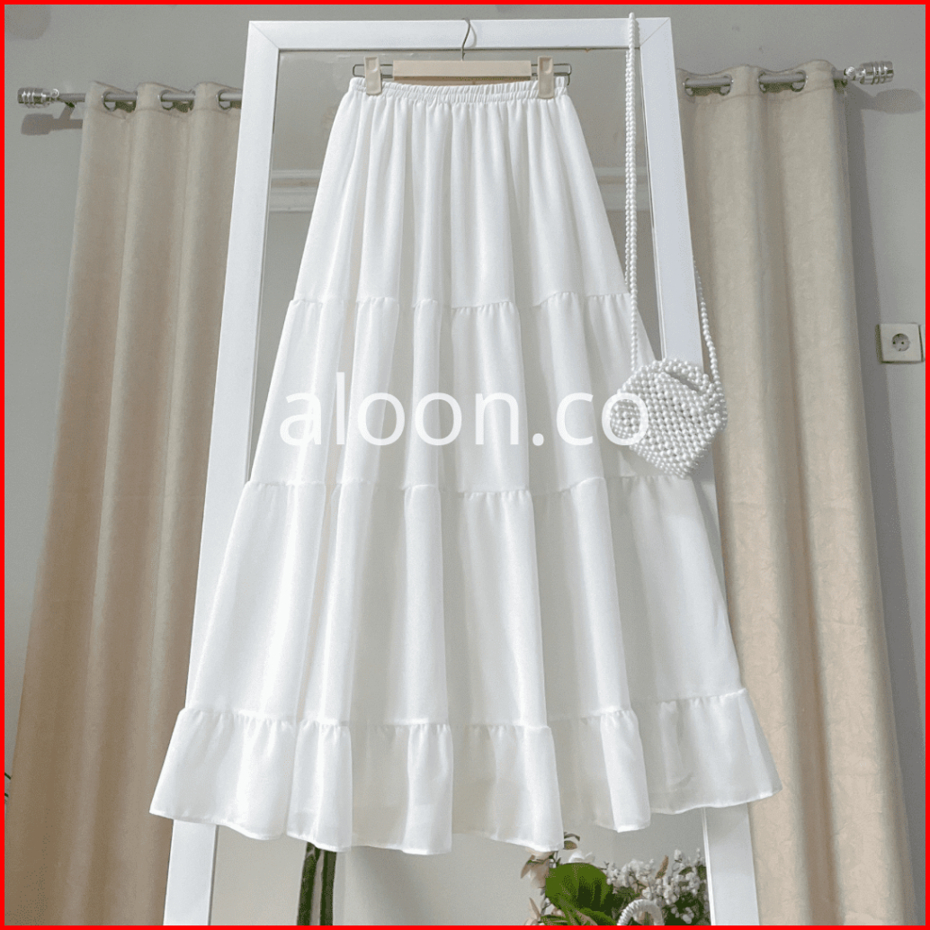 Serena Rok Midi Rempel Ceruty Babydoll Premium Rok Susun Ruffle Midi Skirt Panjang