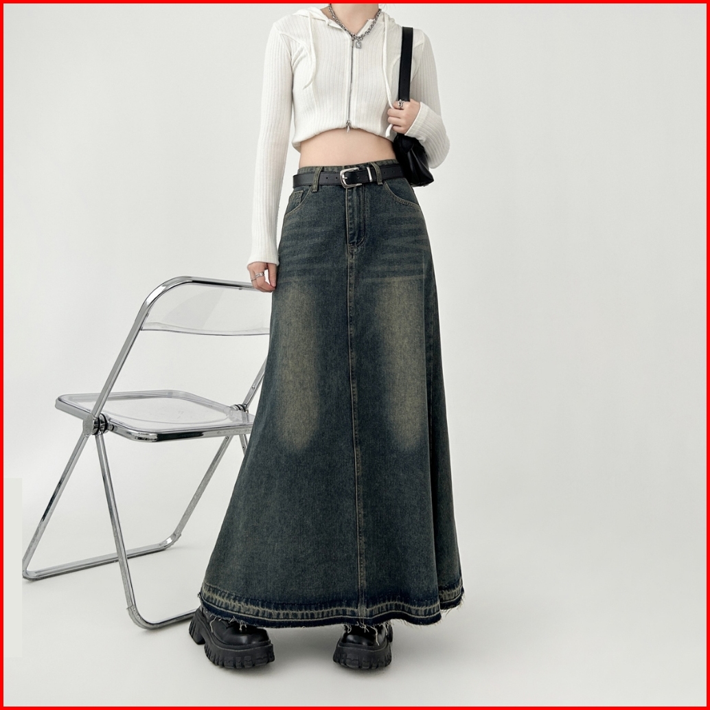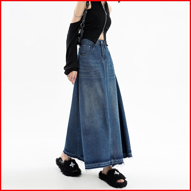 Rekomendas Rok Vintage Panjang Wanita Rok Korean Style High Waist Rok Maxi Skirt Rok Jeans Jumbo