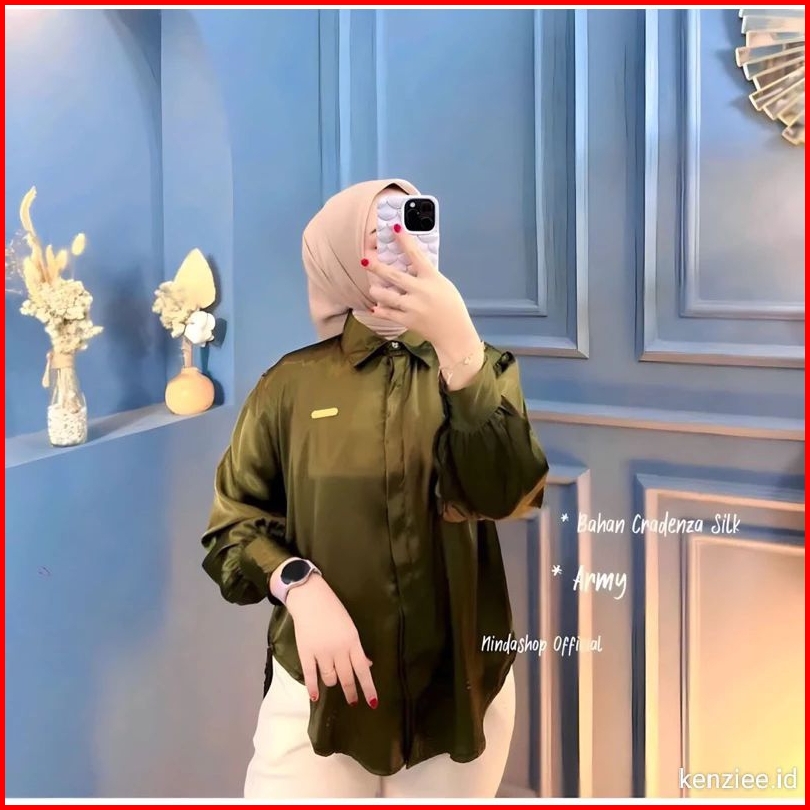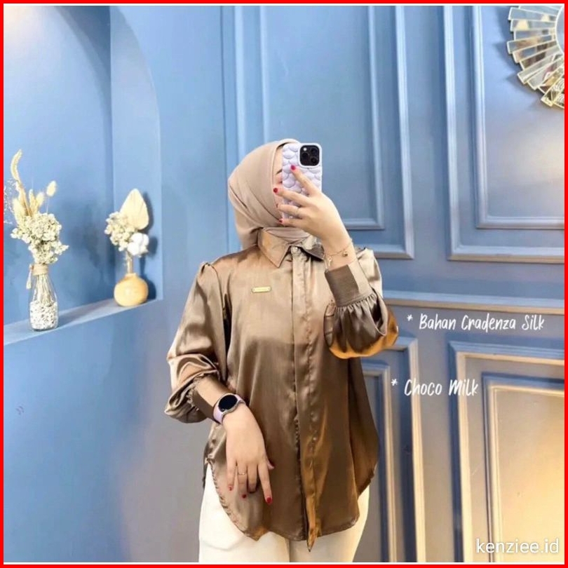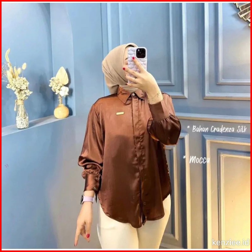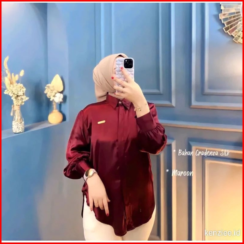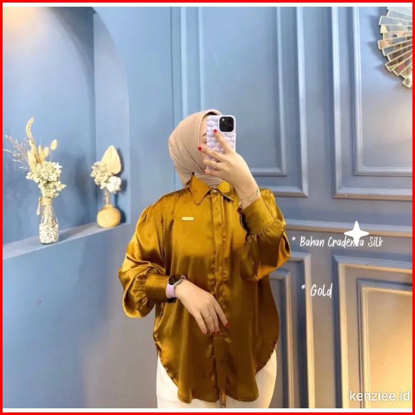 Haisist - Atasan Kemeja Basic Wanita Cradenza Silk Premium - Shimmer Shirt - Kemeja Shirt Korean Look