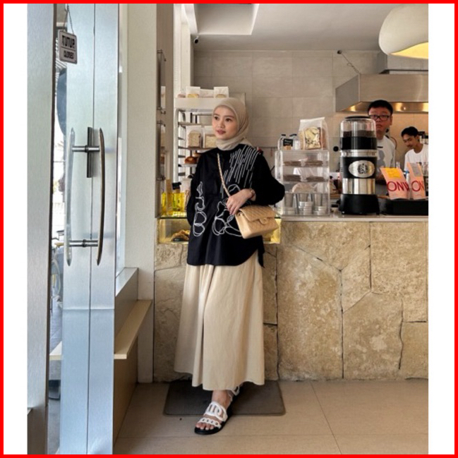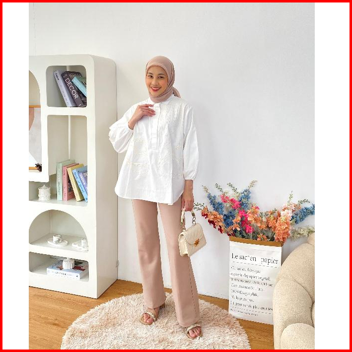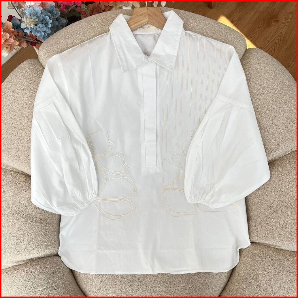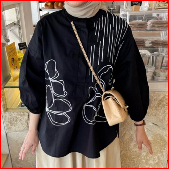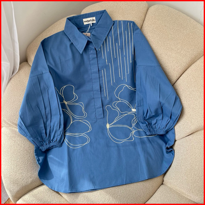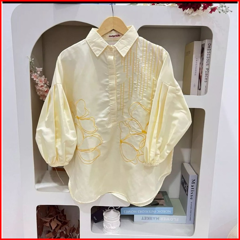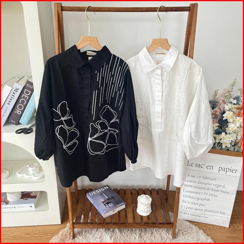 Charvy Shirt Atasan Wanita Kekinian Premiun Bahan Katun Bunga Bordir Kemeja Cantik