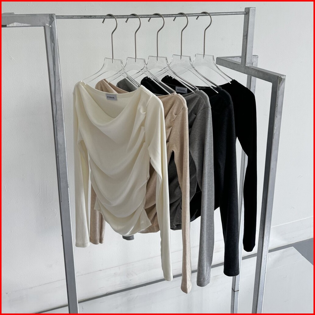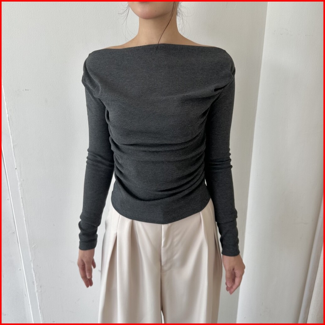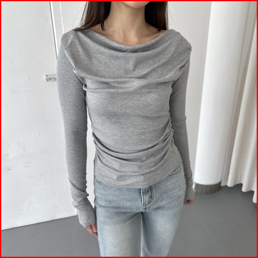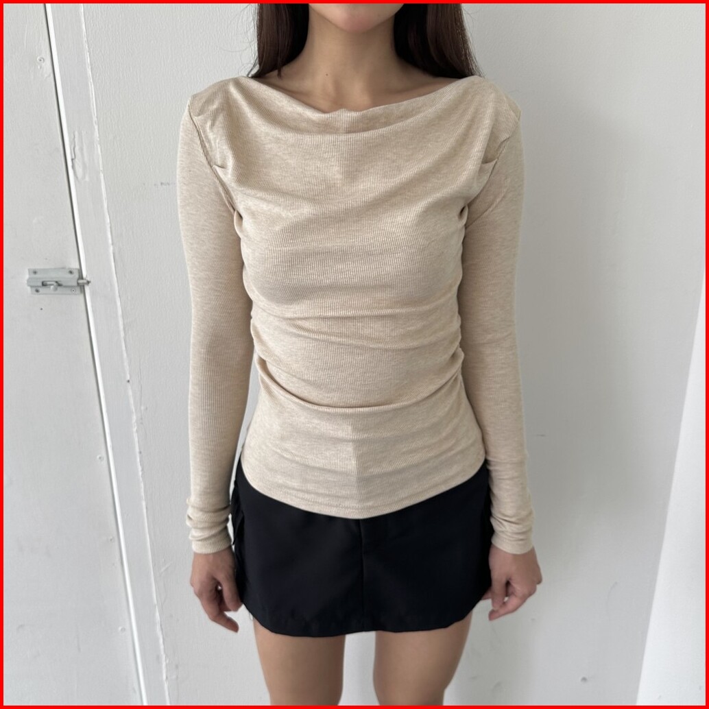 Alba Top - Atasan Knit Wanita Lengan Panjang Boat Neck Drape Cowl Korean Top Basic Baju Summer Ribbed Knit Rib Long Slee