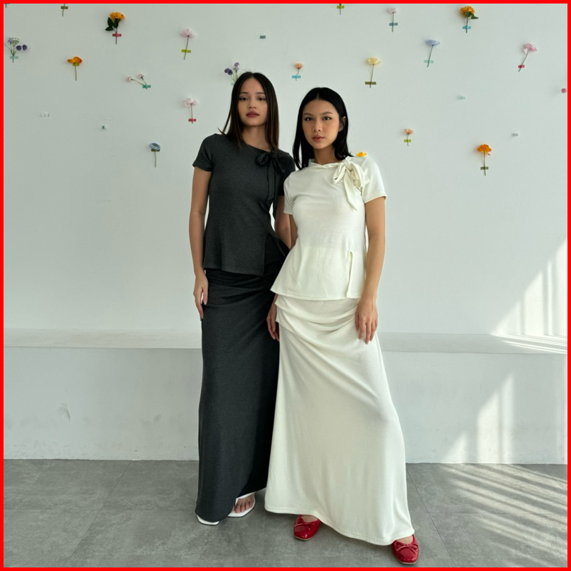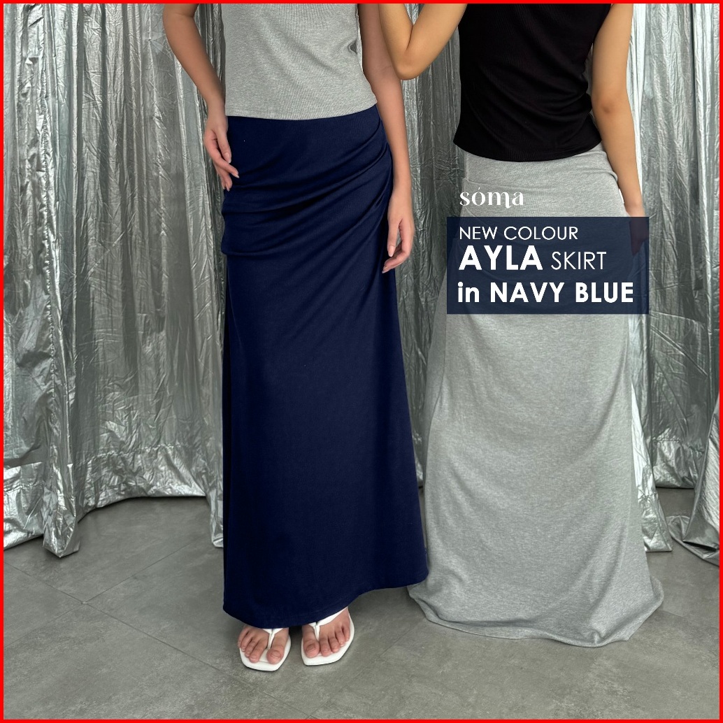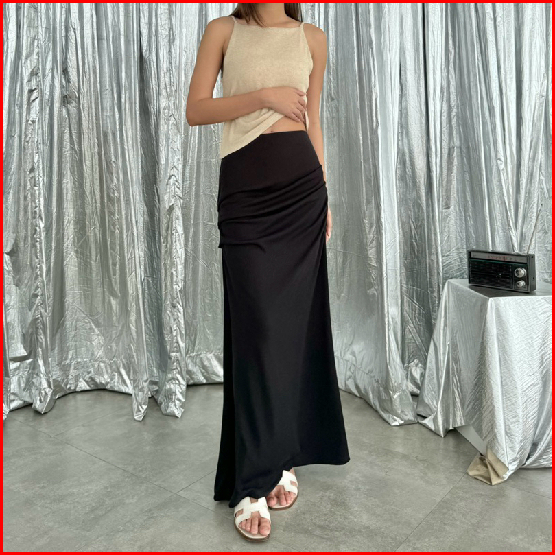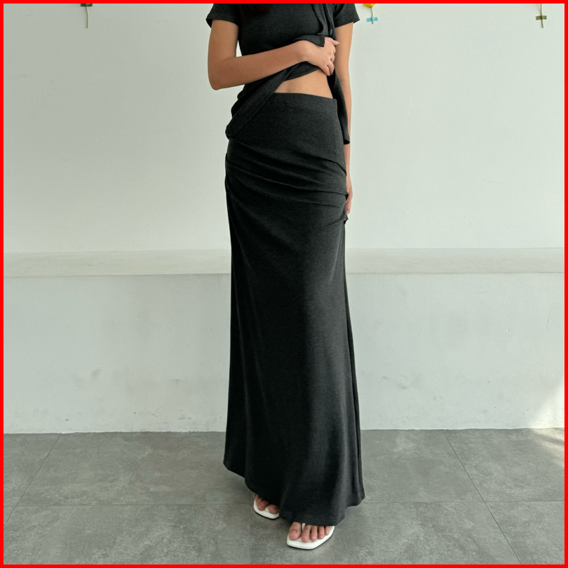 Ayla Skirt Rok Panjang Knit Wanita Long Maxi Rib Knit Skirt Rample Ruched Pleated Kerut Woman Korean Bawahan Pleats Kore