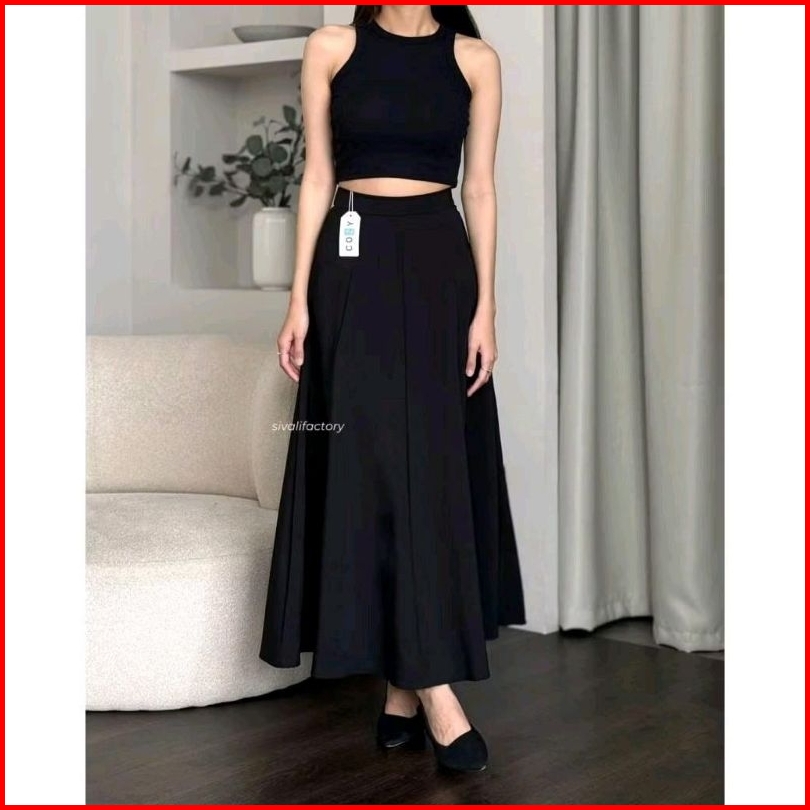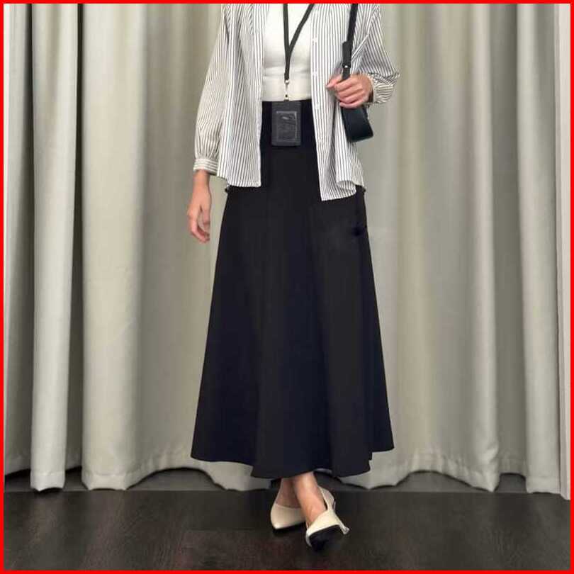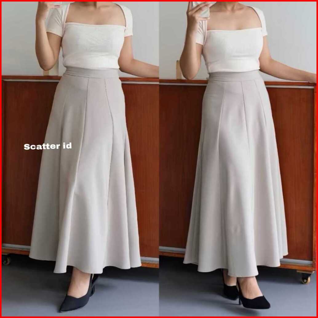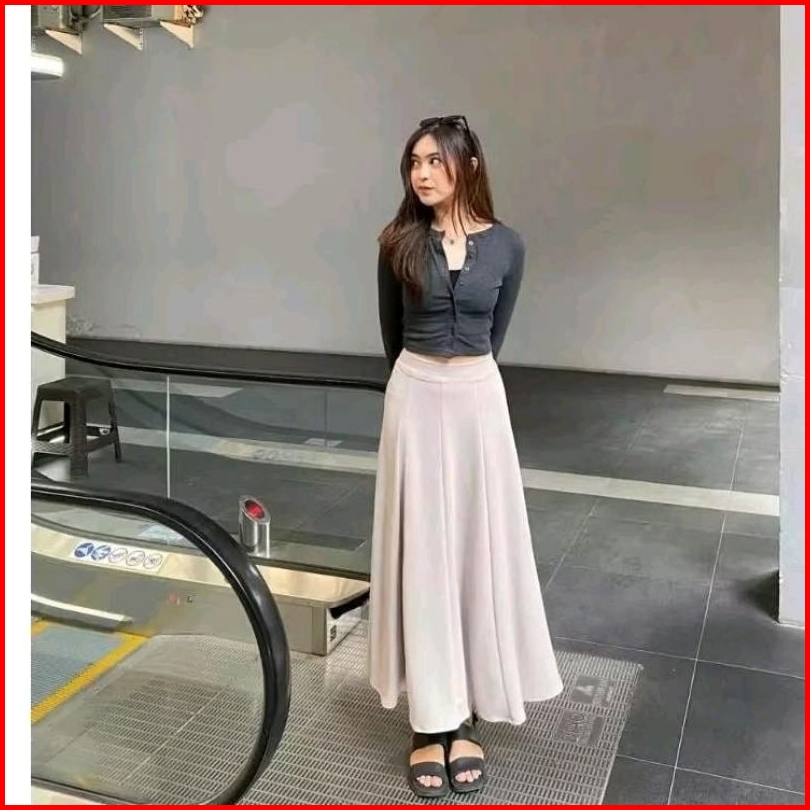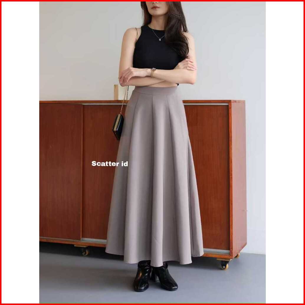 Audy Skirt - Korean Loose Maxi Skirt Rok Wanita Anti Kusut Polyester - Rok Flare Wanita - Rok Basic Polos - Maxi Skirt P