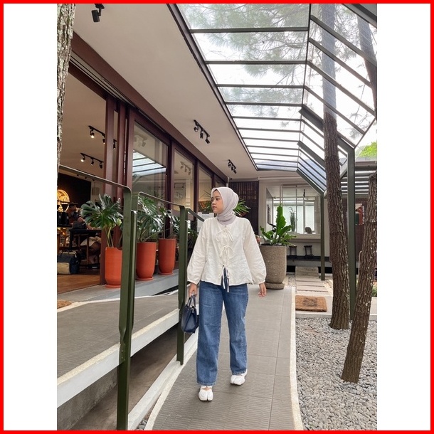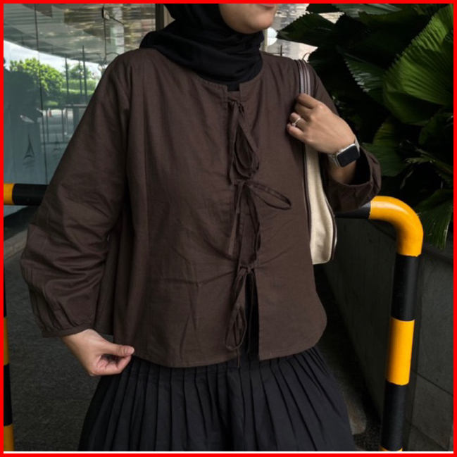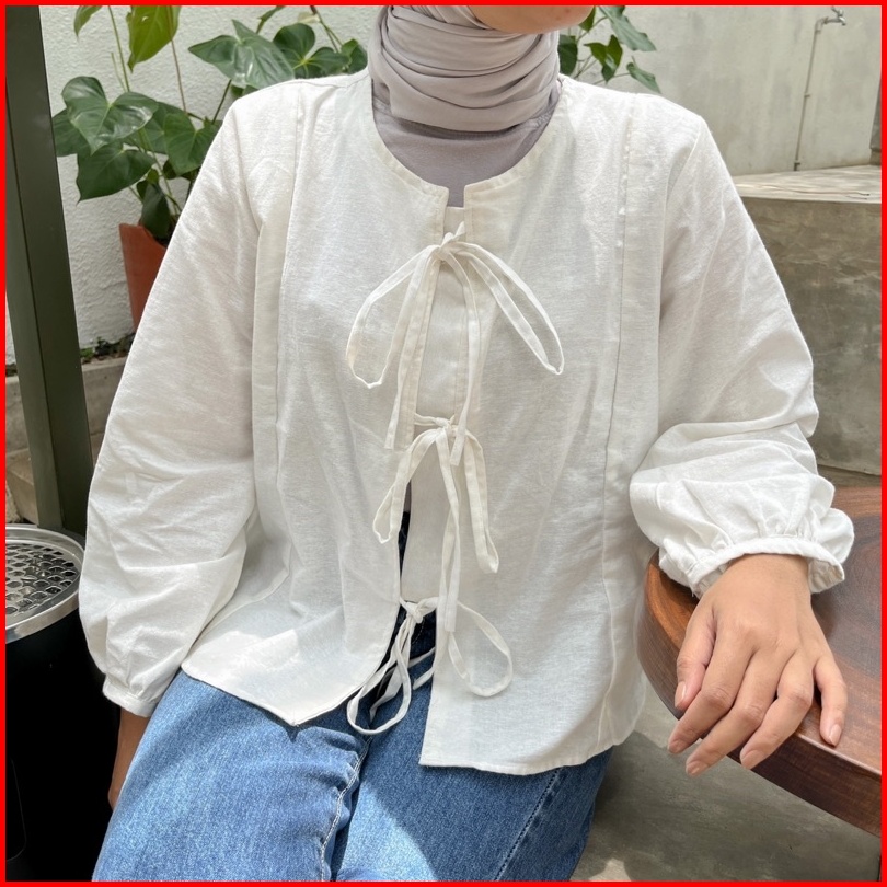 Julja Top Blouse Wanita Baju Linen Baju Tali Pita