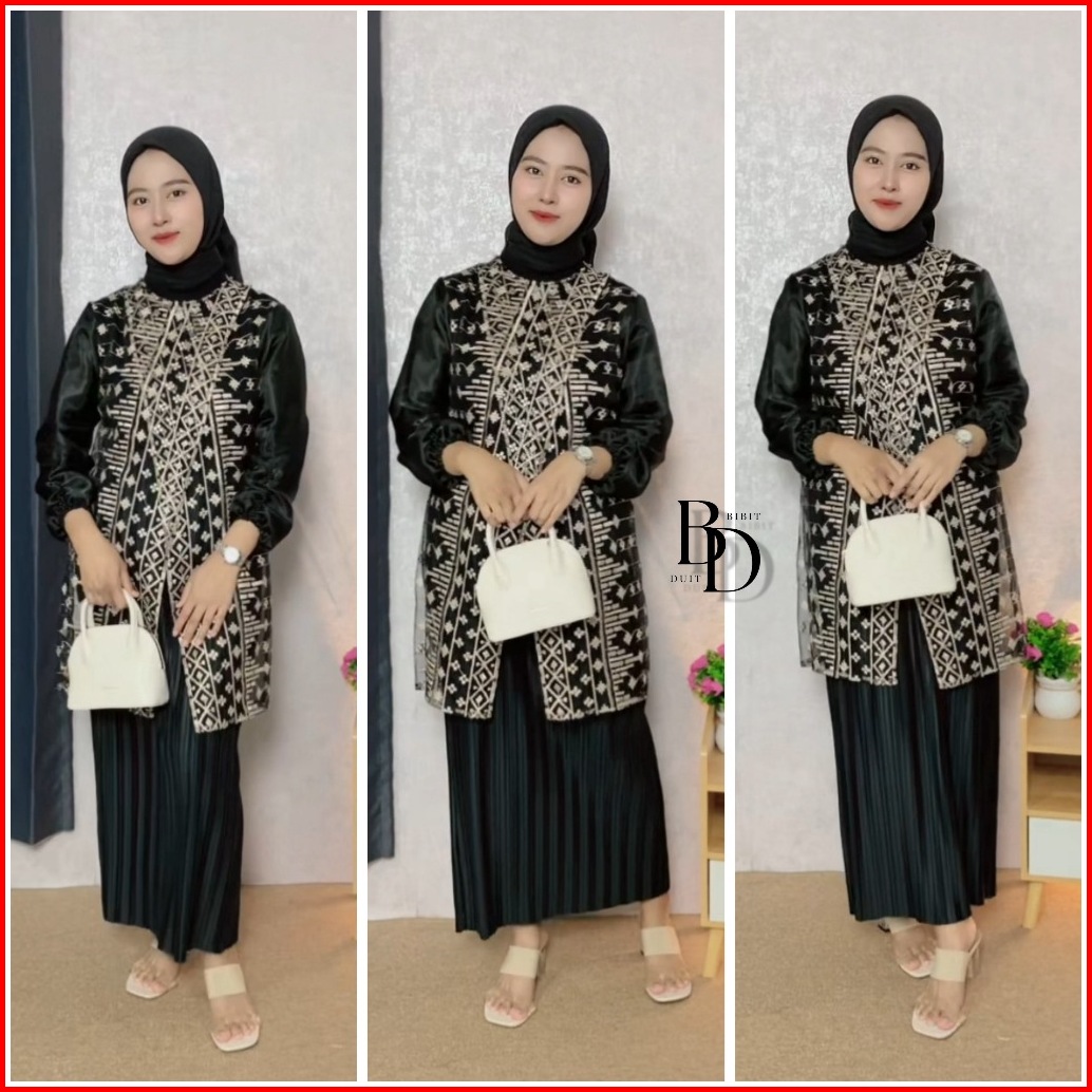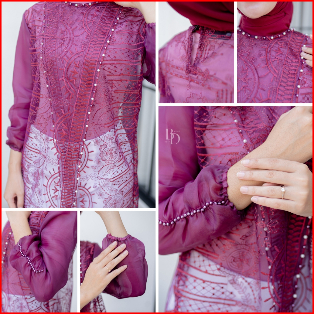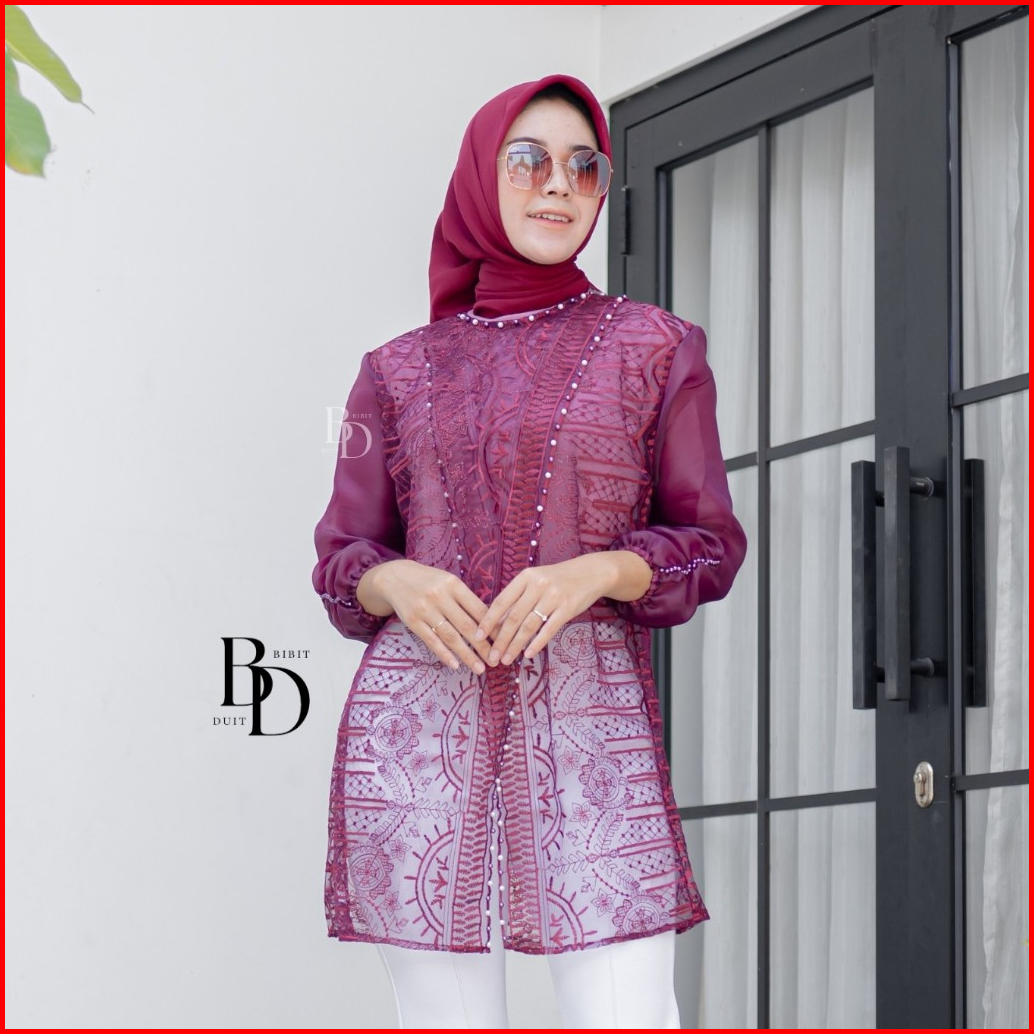 Fiona Outer Tunik Brokat Silang Full Payet Bordir Baju Lebaran Kondangan Kekinian Wisuda Bridesmaids