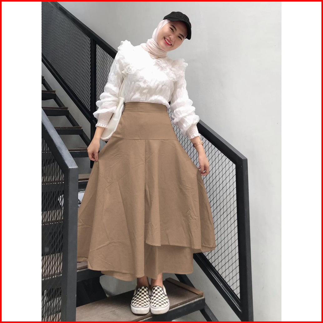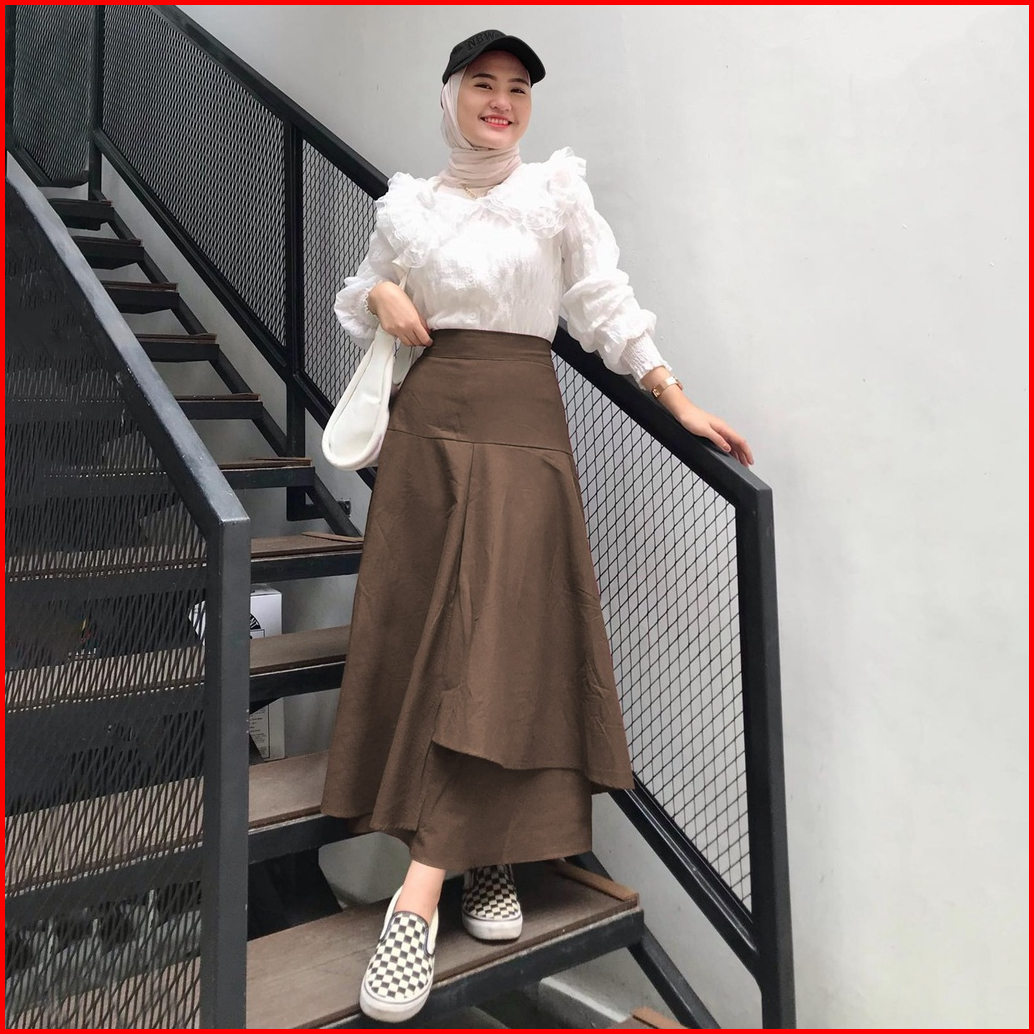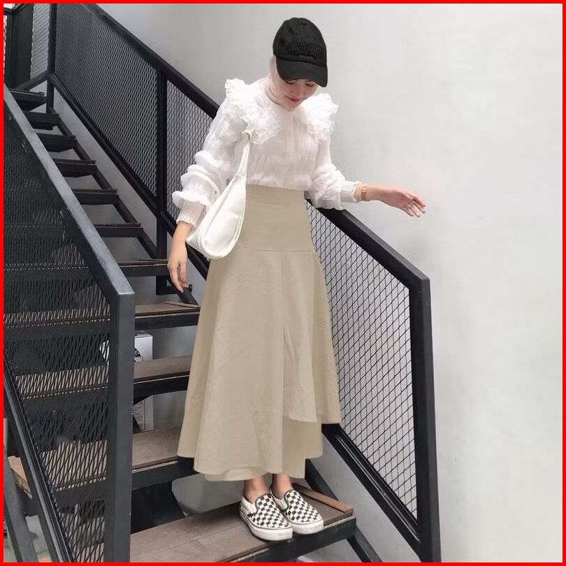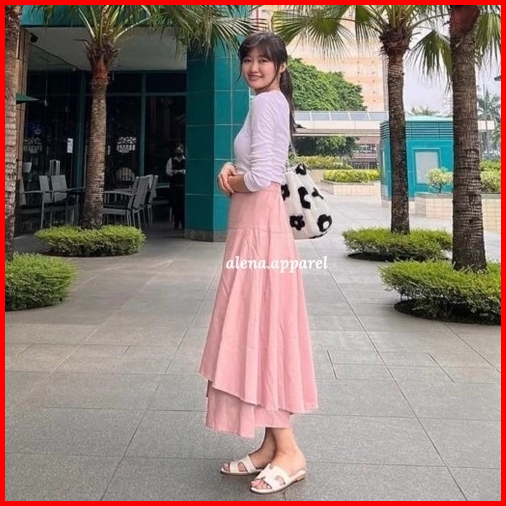 Rok Panjang Wanita Premium Terbaru Rok Korean Style Monalica Milana Susun Mekar All Size Fit L