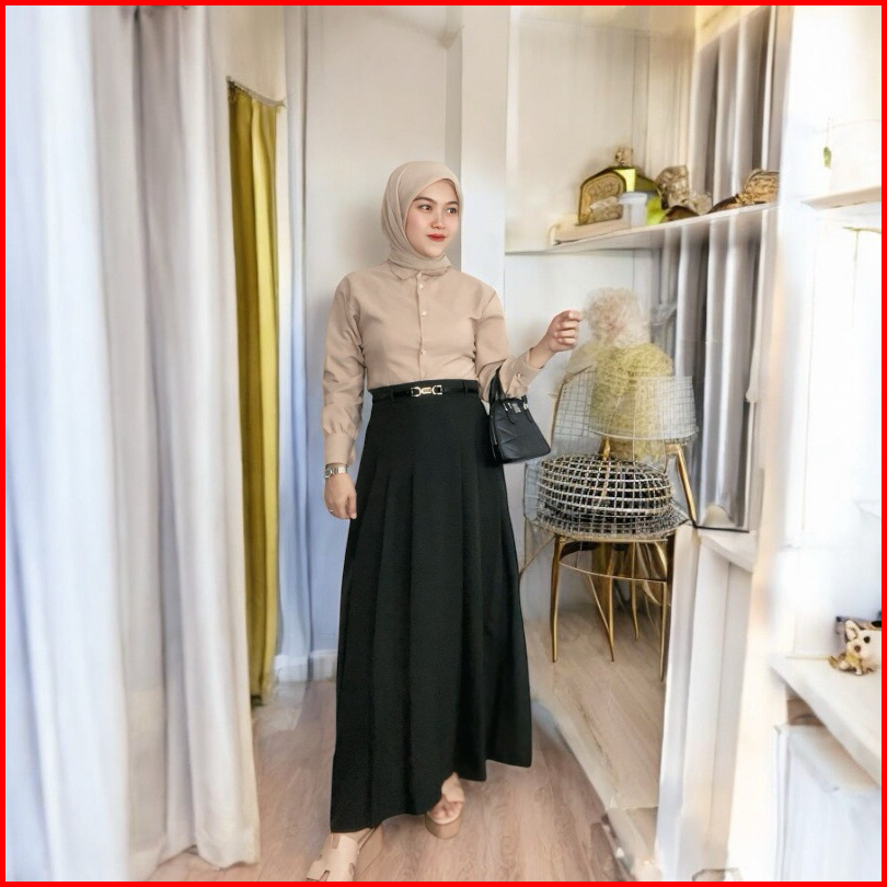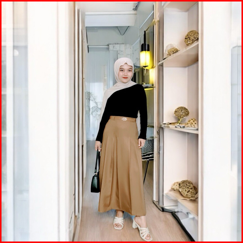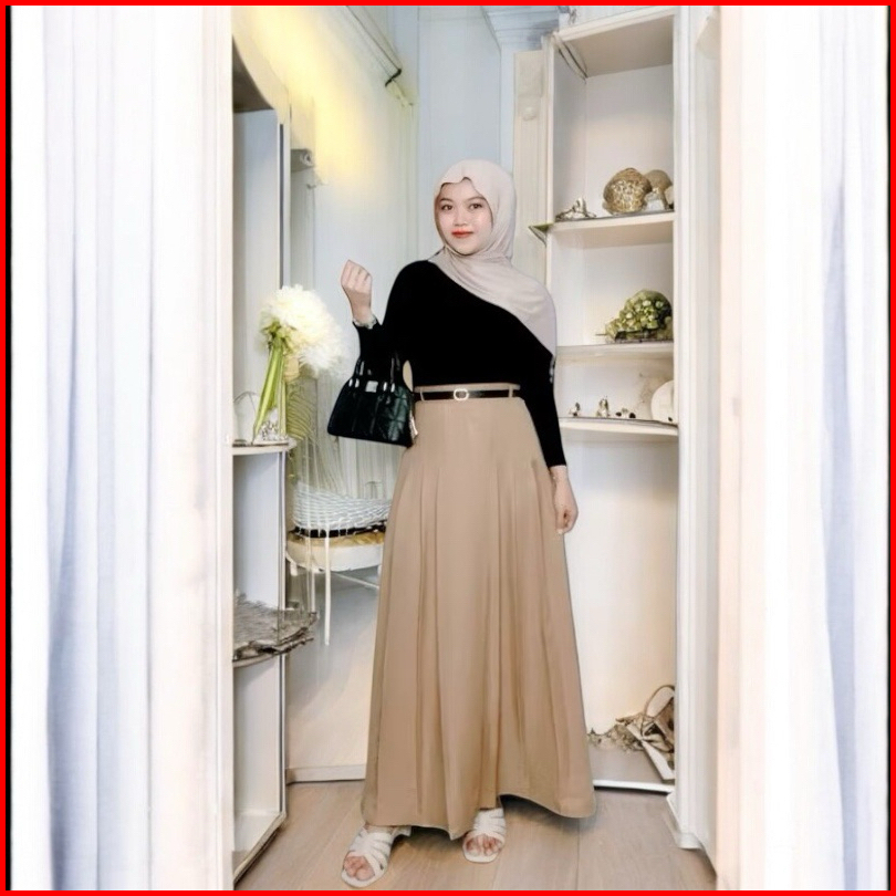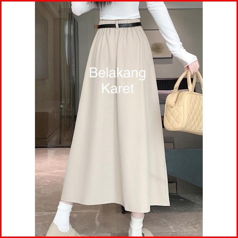 Jesi- Joy Skirt-rok Flare Wanita Korean Style- Bahan Semiwoll Lokal Model Panjang Midi