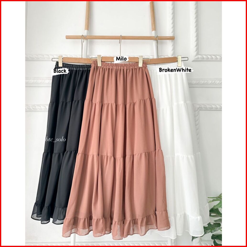 Rok Rufla Midi Skirt Ceruti Ceruty Full Furing Jumbo Besar Panjang Premium Eksklusif Perempuan Wanita Muslimah Termurah