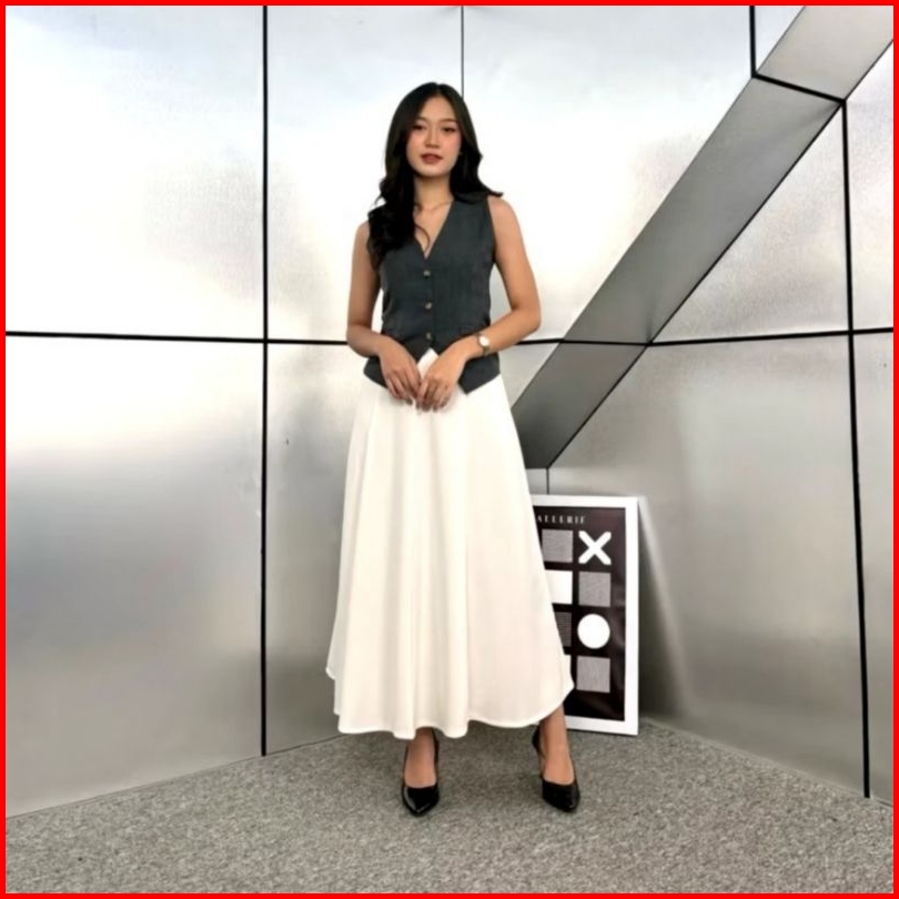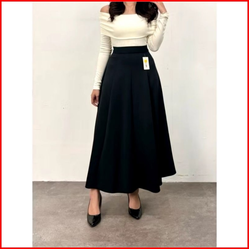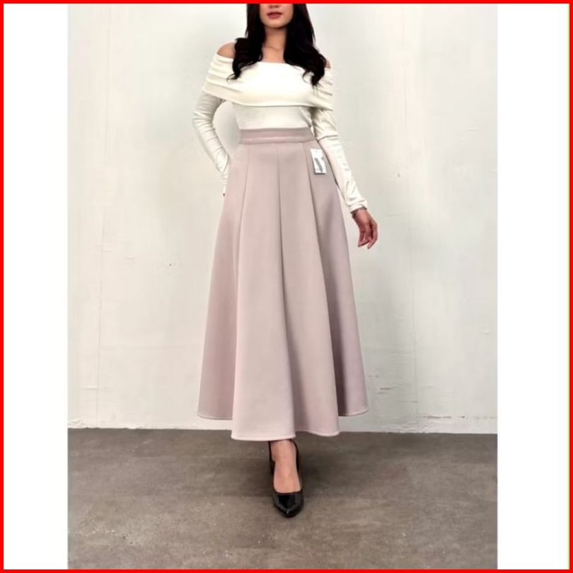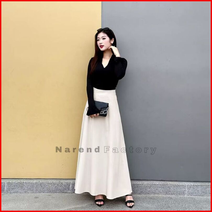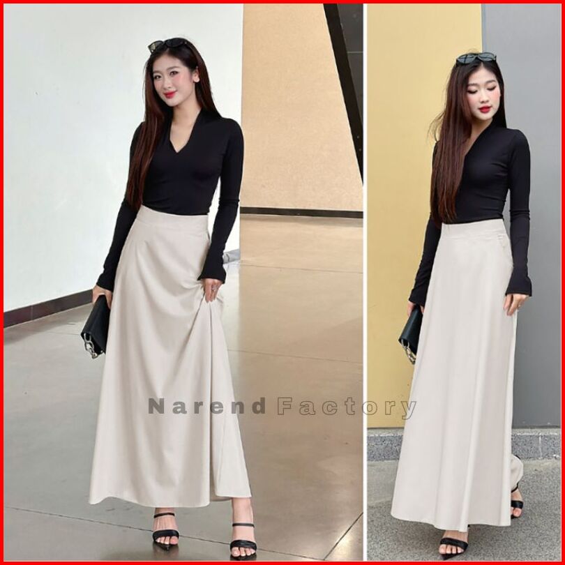 Audy Skirt - Korean Loose Maxi Skirt Rok Wanita Anti Kusut Polyester - Rok Flare Wanita