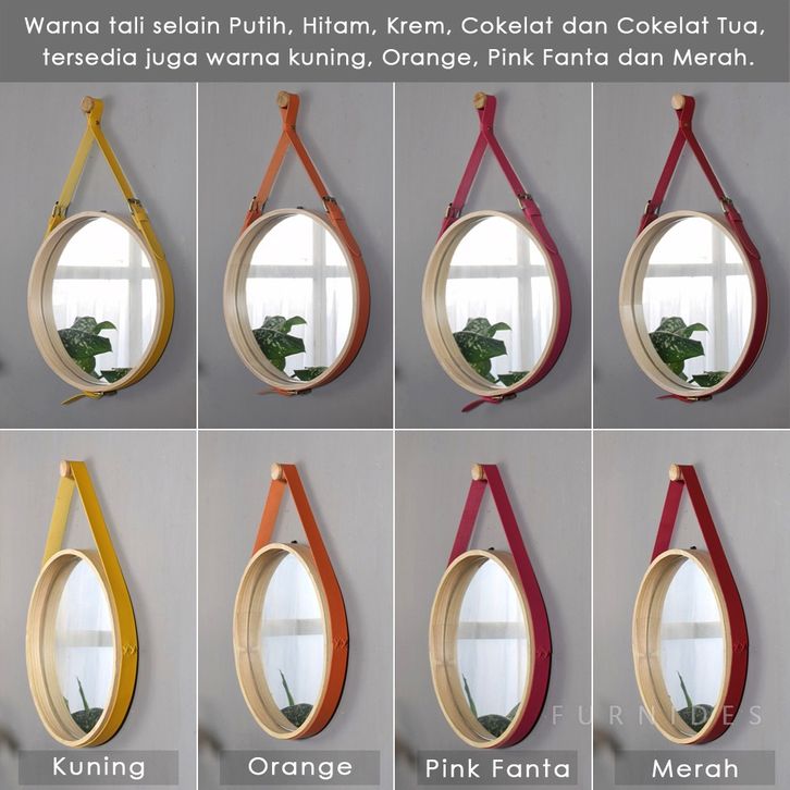 Cermin Gantung Bulat/bundar Diameter 37 Cm Cermin Gantung Frame Tebal 4 Cm Motif Kayu Hiasan Dinding