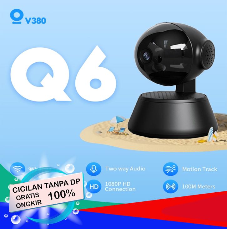 V380 Q6 BLACK Camera Keamanan Cerdas 360 Derajat HD Panorama 3D WiFi Penglihatan Malam Kamera IP CCTV