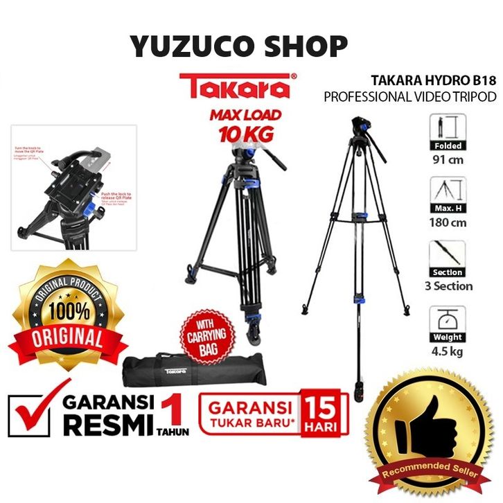 TRIPOD TAKARA HYDRO B 18 B18 PROFESSIONAL VIDEO TRIPOD FLUID PAN HEAD RESMI