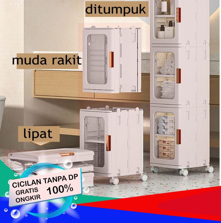 LEORA Lemari Lipat Plastik Lemari Pakaian Lemari Susun Kolong Lemari Serbaguna Rak Buku Toilet Dapur