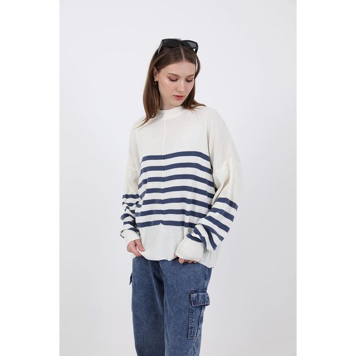 Berrybenka Atasan Sweater Rajut Blouse Wanita Sofia Misye Stripes Sweater