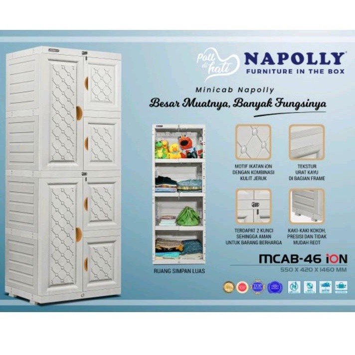 LEMARI BAJU PLASTIK NAPOLLY MINI CABINET MCAB 46 ION / LEMARI PAKAIAN PLASTIK PUTIH