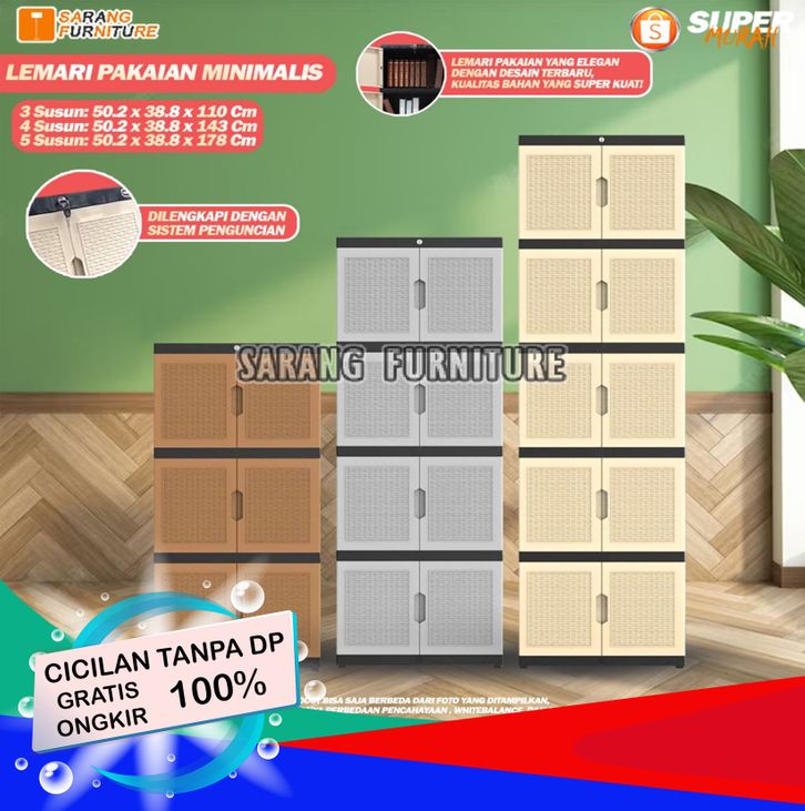 NANDOS MINI CABINET LEMARI PAKAIAN PLASTIK DENGAN KUNCI LEMARI PINTU ROTAN DILENGKAPI KUNCI