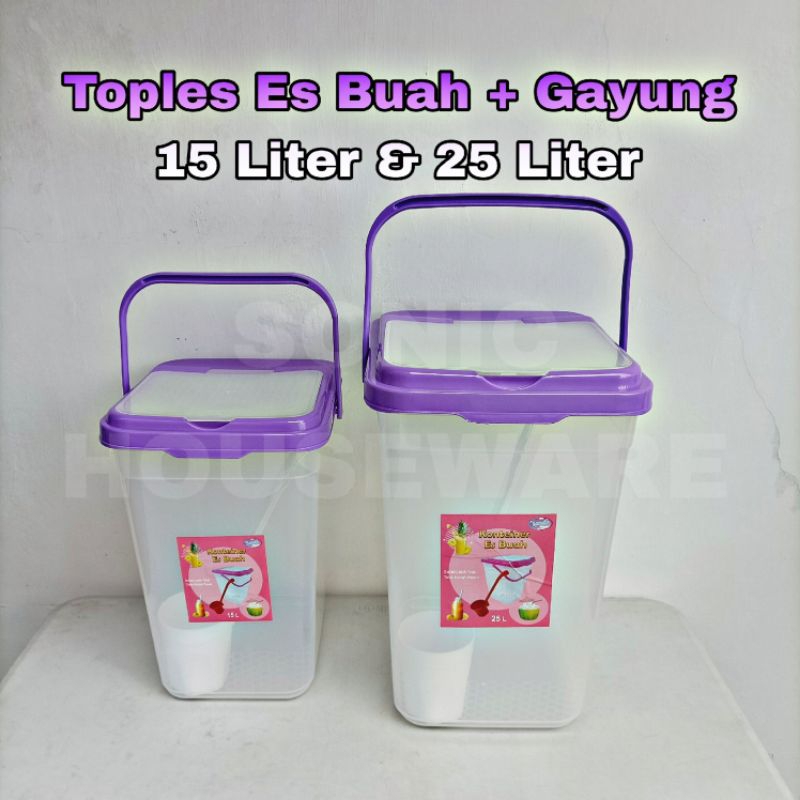 TOPLES ES BUAH GAYUNG 15 LITER 25 LITER KOTAK SEGI AQUARIUM KONTAINER CONTAINER CENTONG WADAH TEMPAT DISPENSER JUALAN ES AIR MINUMAN JUS SEGAR SOP COCKTAIL