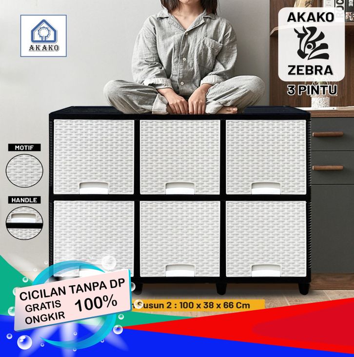 Lemari Pakaian Plastik AKAKO ZEBRA 3 Pintu 2 3 Susun Laci 6 9 Pintu Putih Rotan MURAH KUAT KOKOH