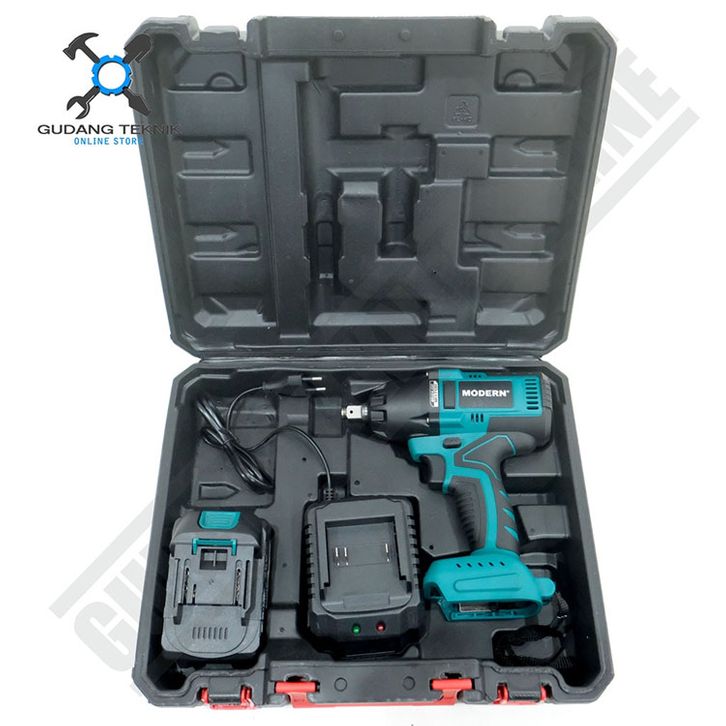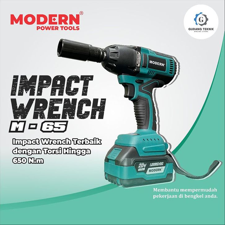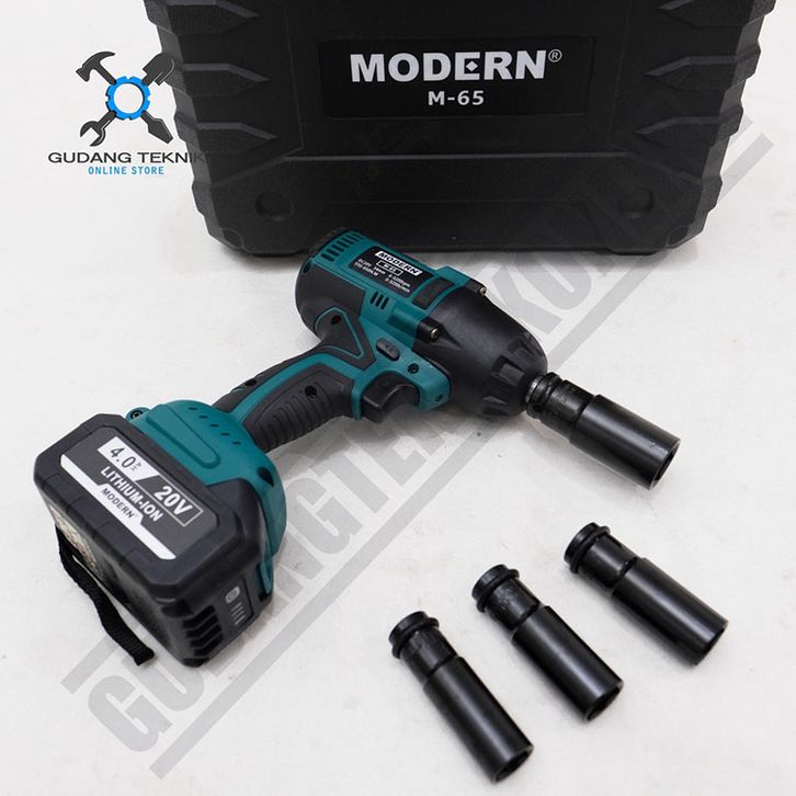 Mesin Bor Pembuka Baut Modern M65 20v Baterai Cordless Impact Wrench Torsi 650nm Full Set Koper