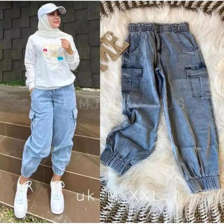 Celana Joger Jeans Cargo Wanita Tebal Celana Casual Wanita Celana Panjang Wanita Celana Cargo Jumbo Perempuan