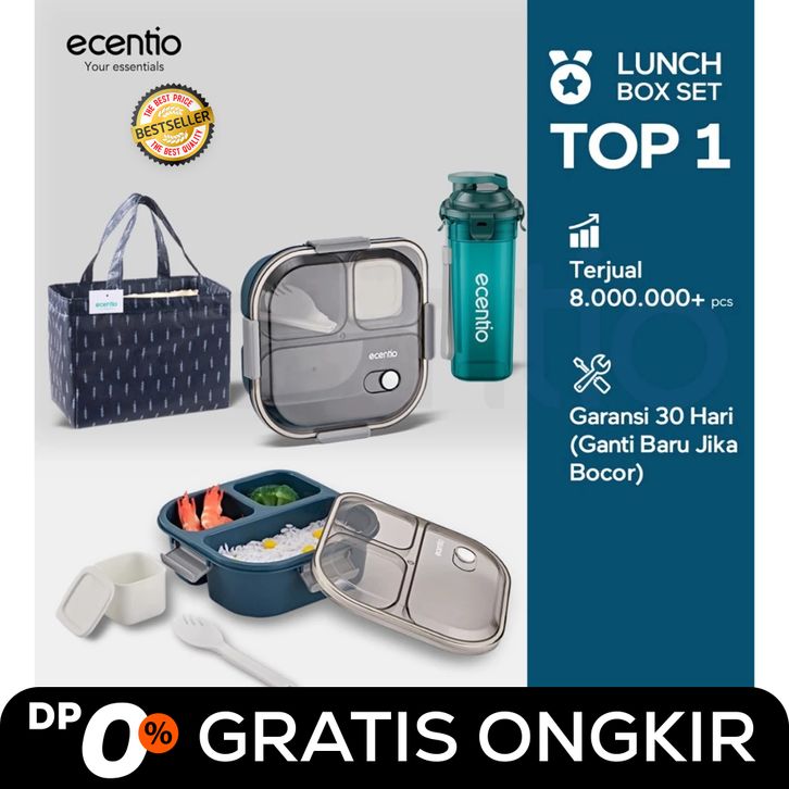 Tempat Bekal ecentio 3 grid 1100ml Lunch Box Set Tas Bekal Botol Minum Kotak Bekal Anak Tempat Makan Sekolah Kantor