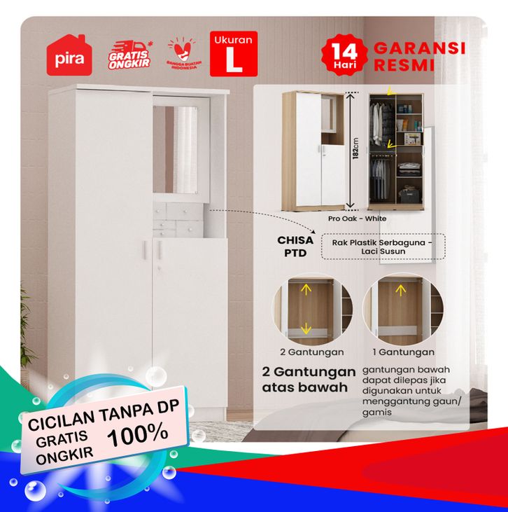 Pira Metropolis OX - Aruna WDD 2 Lemari Pakaian 2 Pintu dengan Kaca Rias