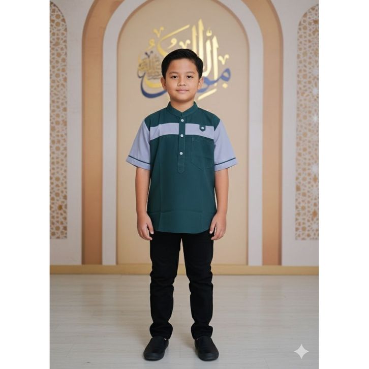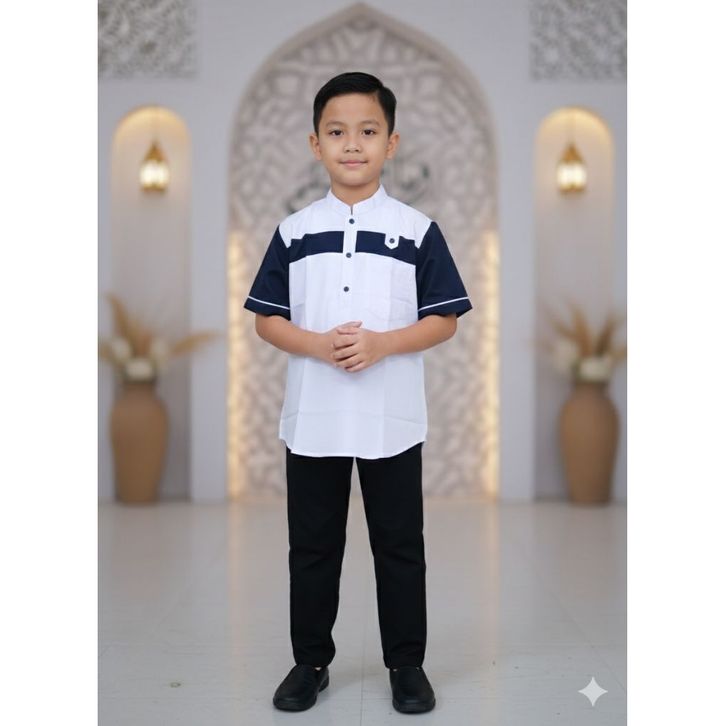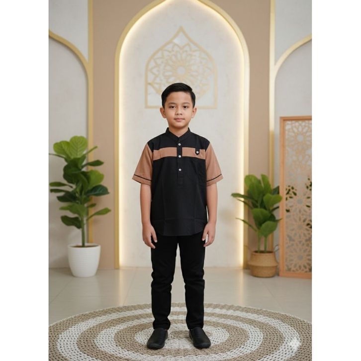 BAJU KOKO KURTA ANAK LAKI LAKI ATASAN PAKAIAN LENGAN PENDEK USIA 6 - 14 TAHUN KATUN PREMIUM