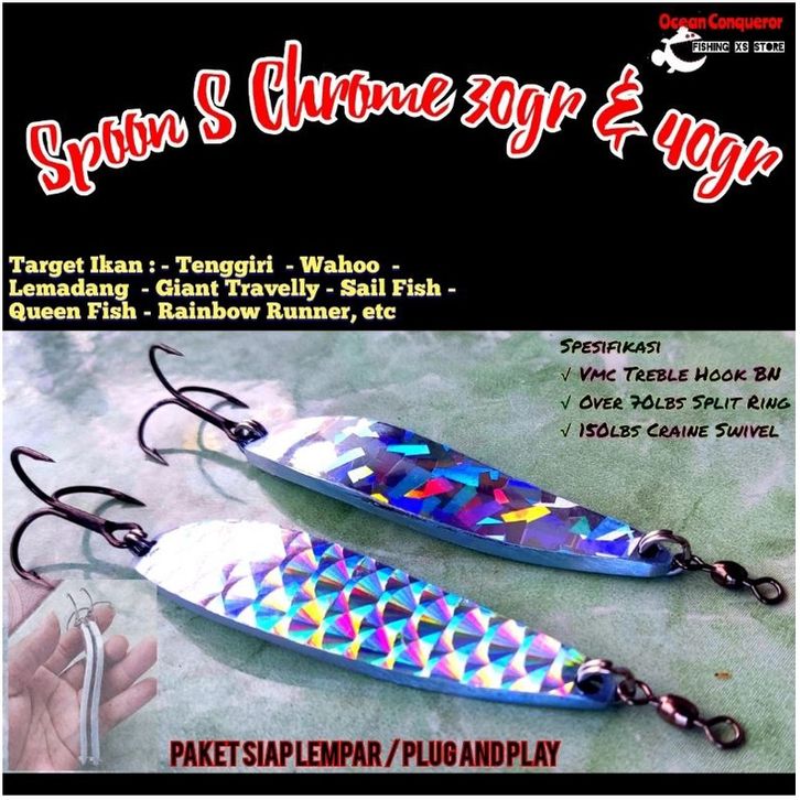 PROMO Spoon Umpan tenggiri murah lure casting 30 & 40gr & 56gr & 75gr + Treble + Swivel