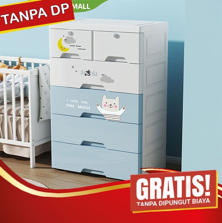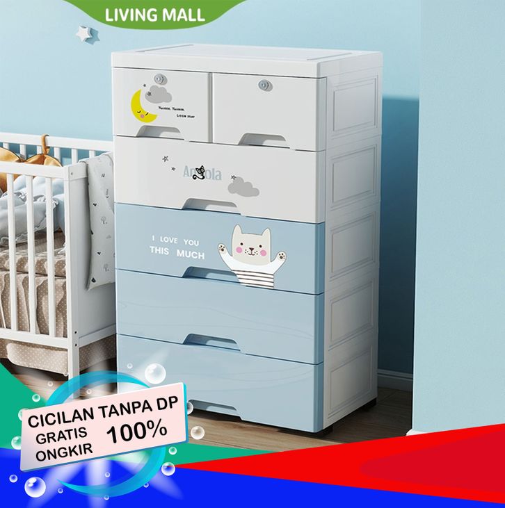 LIVING MALL Lemari Plastik 4/5 Tingkat Tempat Penyimpanan Mainan /Lemari Plastik/Lemari Pakaian Anak /Snack/Baju Serbagu