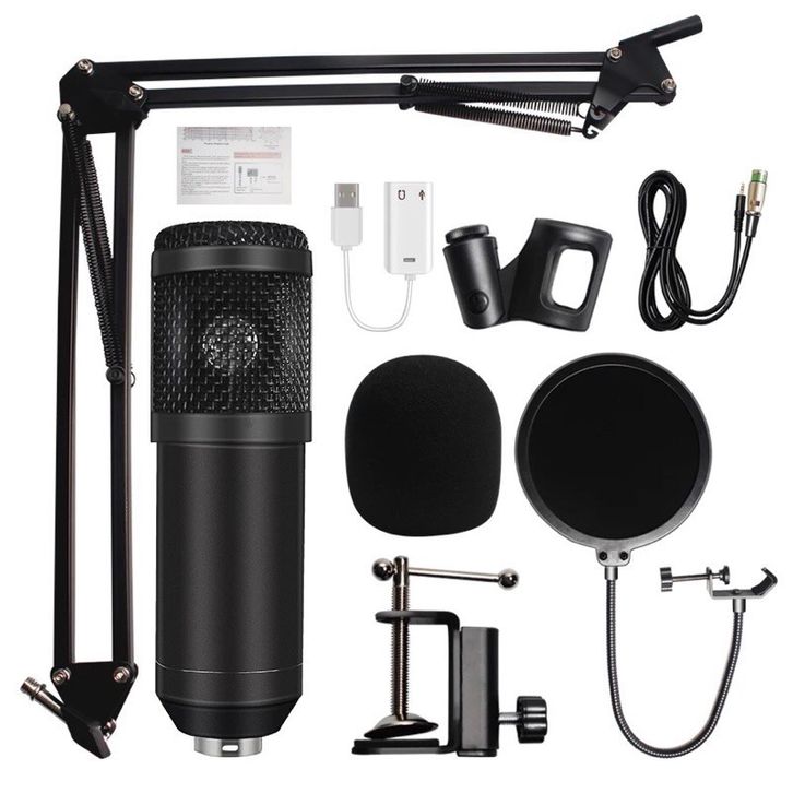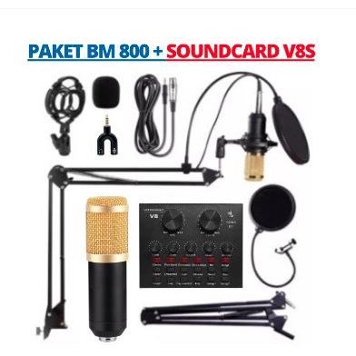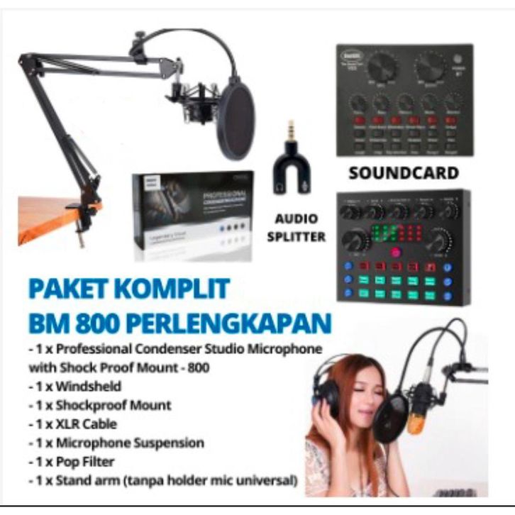 [Star] SOUND CARD SET KAROKE BM 800 Full Set Paket Stand Recording Microphone Mic Condenser + SOUNCARD V8 Plus AUDIO m