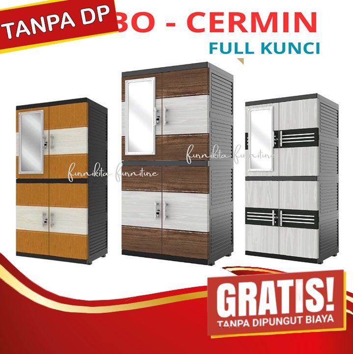 JUMBO LEMARI PAKAIAN PLASTIK NAIBA MSC FIT CERMIN SUSUN 4 MODERN - FULL KUNCI