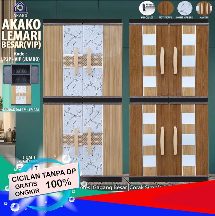 AKAKO Lemari Pakaian Plastik Baju JUMBO BESAR Mirip NAIBA MURAH LP2p VIP KACA CERMIN FULL KUNCI