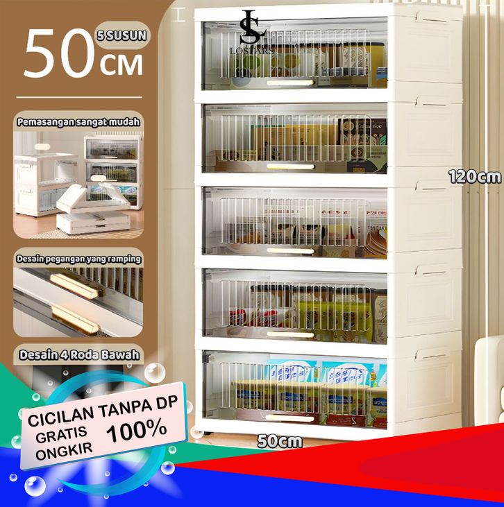 Lostars T3 (Tidak Perlu Instalasi) Rak Kabinet Susun Lipat/Rak Buku Serbaguna ada Roda/Lemari Plastik Lipat Susun