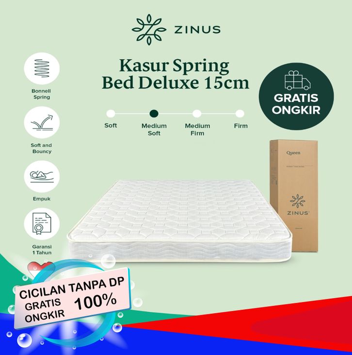 Kasur Spring Bed Zinus Deluxe 15cm Gratis Ongkir Tempat Tidur In a Box