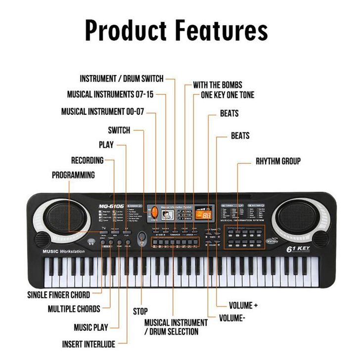 [TSJ]MAINAN ANAK PIANO ELEKTRONIK 61 KEYS / KEYBOARD ELECTRONIC 61 KEYS LENGKAP MIC DAN CHARGER