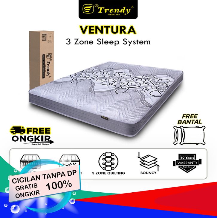 Trendy Ventura Kasur Spring Bed Bonnell Spring - Vacuum Press Roll - Mattress Kasur Dalam Box