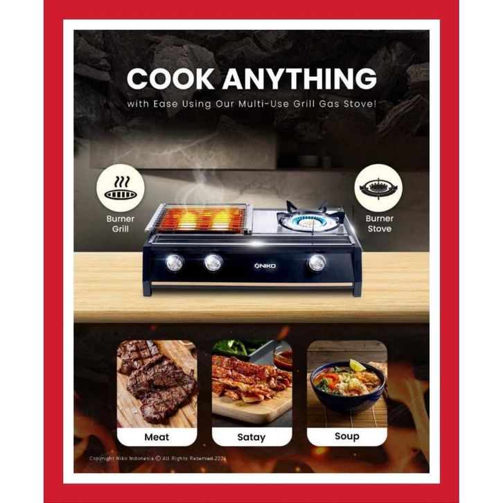 KOMPOR GAS 2 IN 1 / PANGGANGAN SEKALIGUS ADA KOMPOR 1 TUNGKU / KOMPOR GAS NIKO / KOMPOR GAS MURAH