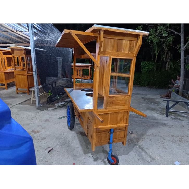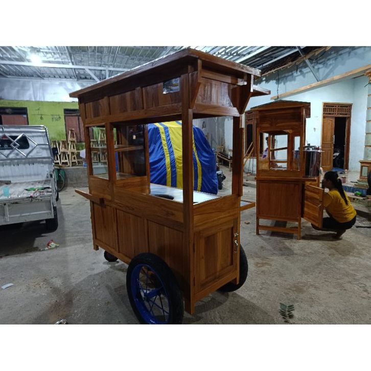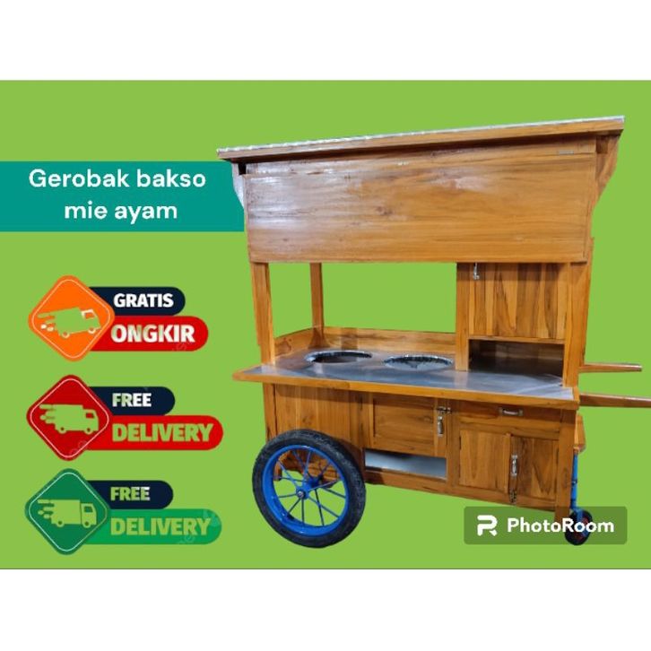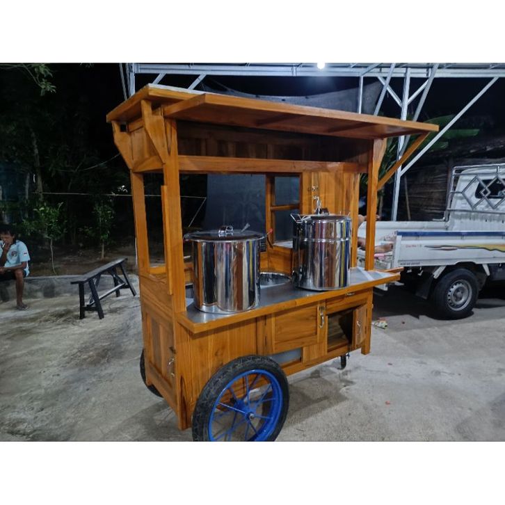 gerobak bakso mie ayam kayu jati roda tiga dan dua dandang