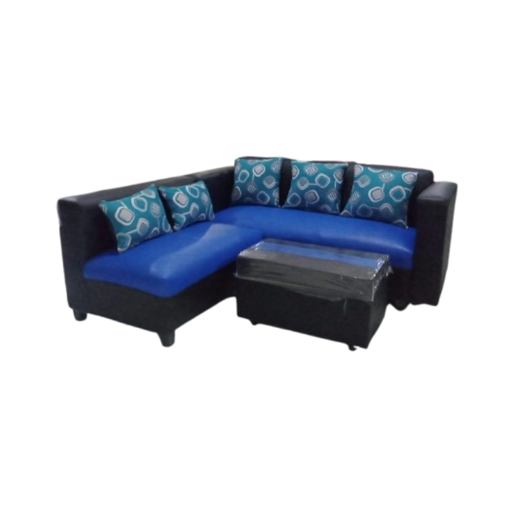 Sofa set L putus hitam minimalis Free meja dan bantal Termurah