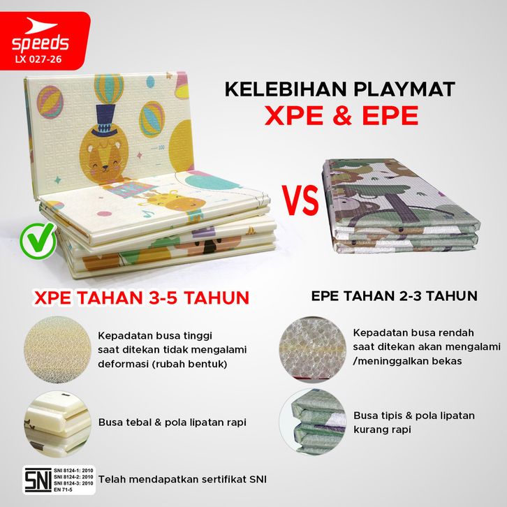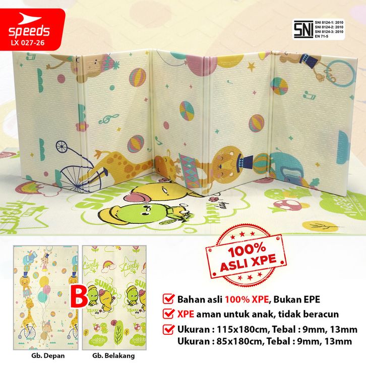 SPEEDS SNI Playmat Bayi Karpet Lipat Playmate Matras 115x180cm 9mm Matras Baby Foam Lipat 027-26-B