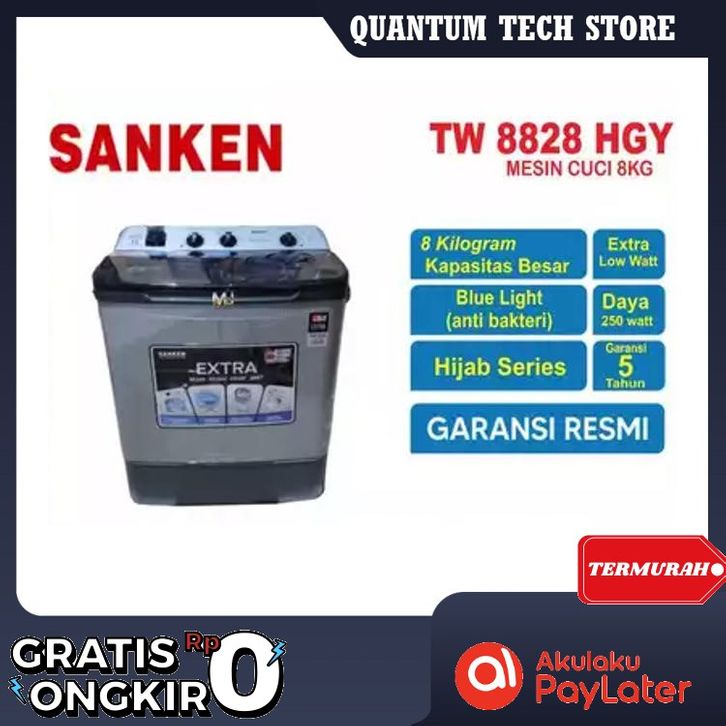 GRATIS ONGKIR MESIN CUCI SANKEN TW 8828 HGY 8KG 2 TABUNG TW-8828HGY 8KG X-TOR PUTARAN CEPAT DAN HEMAT LISTRIK