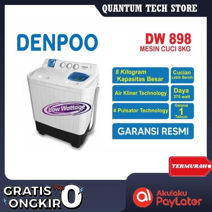 GRATIS ONGKIR MESIN CUCI DENPOO DW 898 8KG 2 TABUNG DW898 8 KG TWIN TUBE AQUA SHARP Official